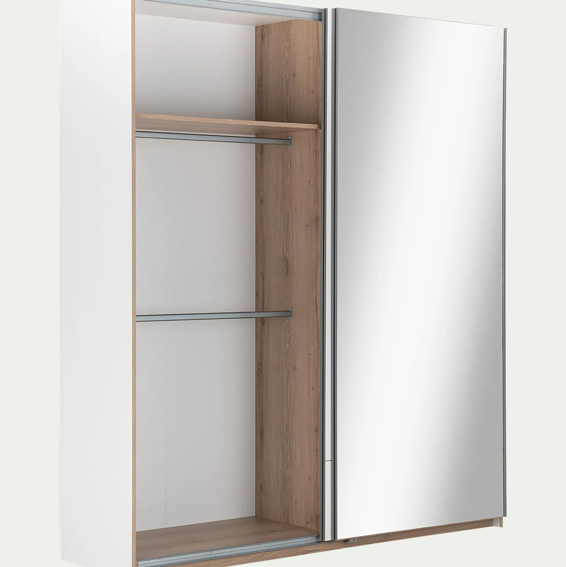 Ici, découvrez un dressing avec deux portes coulissantes, de couleur blanche. Ce meuble vous offre de beaux volumes pour y ranger vos affaires. Vous pouvez choisir cette pièce seule ou associée à un des éléments de la gamme. Chaque module est indépendant, mais ils se complètent aussi parfaitement entre eux. Ce sont des produits de qualité qui vous sont proposés, avec une finition en mélanine et une impression effet bois au toucher. Résistants, ces meubles dureront dans le temps. Le montage de ces derniers est très aisé et se fait en vertical. Les coins des modules sont découpés afin de laisser passer les plinthes et que vous puissiez placer vos meubles contre le mur.