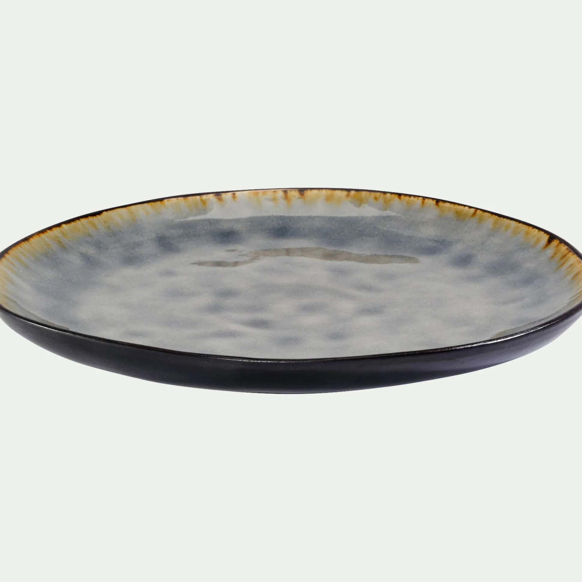 Servez vos gourmandises dans l’assiette à dessert Selime pour réveiller l’appétit de vos convives. Cette assiette ronde de 20 cm de diamètre est confectionnée en grès avec une finition en émail réactif. L’ensemble est vitrifié et diffuse une belle brillance qui mettra en valeurs vos mets. Les couleurs définitives se révèlent à la cuisson : un procédé rendant chaque assiette unique. Les nuances de gris se mélangent à des tonalités brunes : une rencontre poétique rappellant la mer et la terre. Les irrégularités et autres aspérités de cette assiette à dessert en grès lui confèrent un charme authentique qui sublimera votre dressage instantanément.