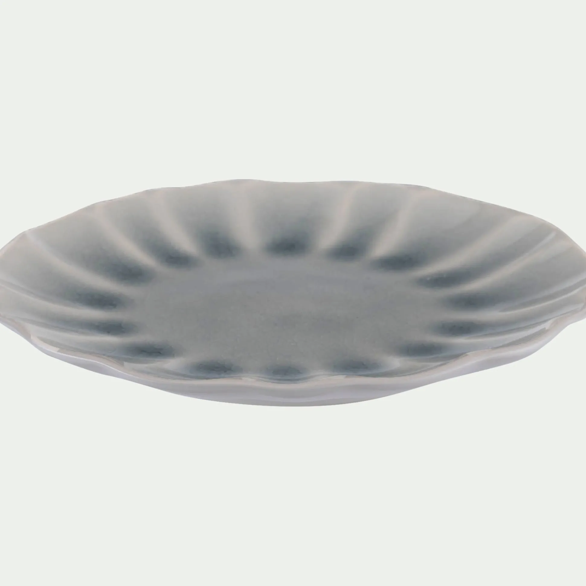 L’assiette à dessert Giulia séduit par sa délicatesse et ses nuances poétiques. Confectionnée en grès bleu, elle présente une bordure légèrement ondulée, comme une corolle de fleur, qui fait subtilement varier les teintes. D’un diamètre de 21 cm, cette petite assiette est idéale pour les desserts, les entrées ou une petite pause gourmande. Un joli mélange d’élégance et de naturel pour embellir chaque instant à table.