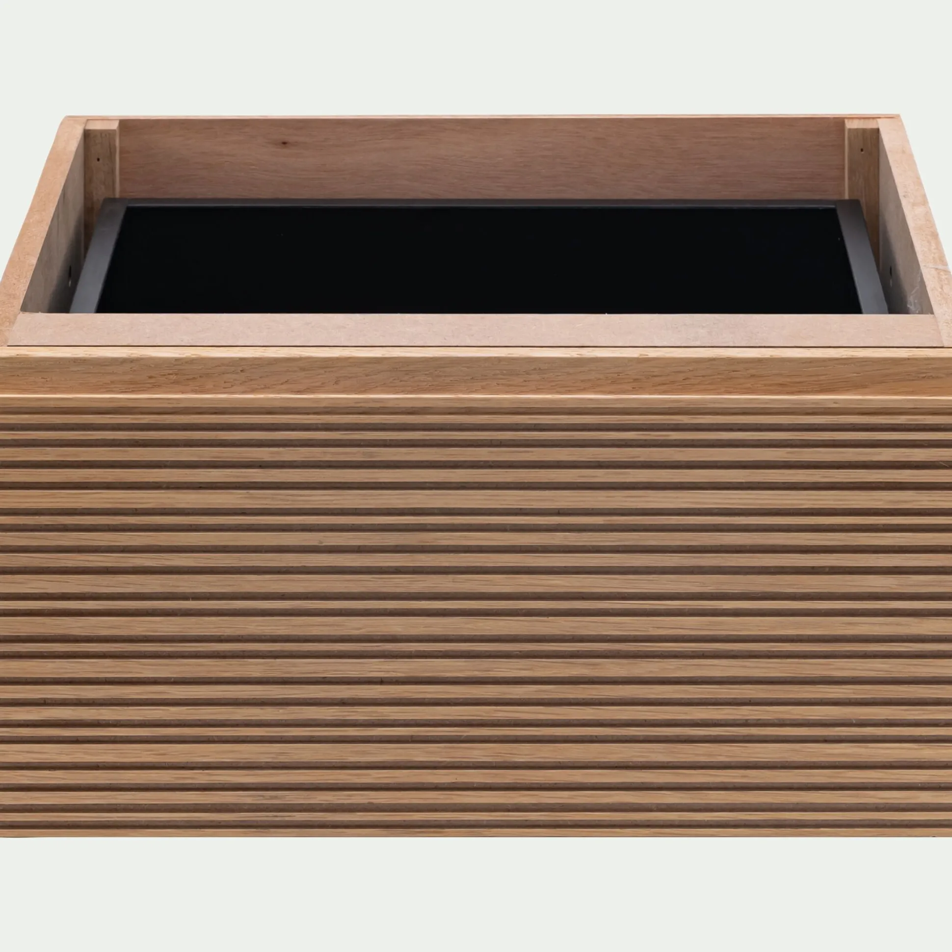 L’élégance du chêne certifié FSC® s’exprime pleinement à travers ce module, équipé de 2 tiroirs striés, apporte une touche graphique et sophistiquée tout en offrant un espace de rangement discret et pratique. Conçue pour s’adapter à vos besoins, cette gamme de mobilier de salon se distingue par ses structures modulables et personnalisables, vous permettant de composer un agencement unique grâce à un large choix d’éléments. Cette collection de meubles au style intemporel se décline en différents modèles.