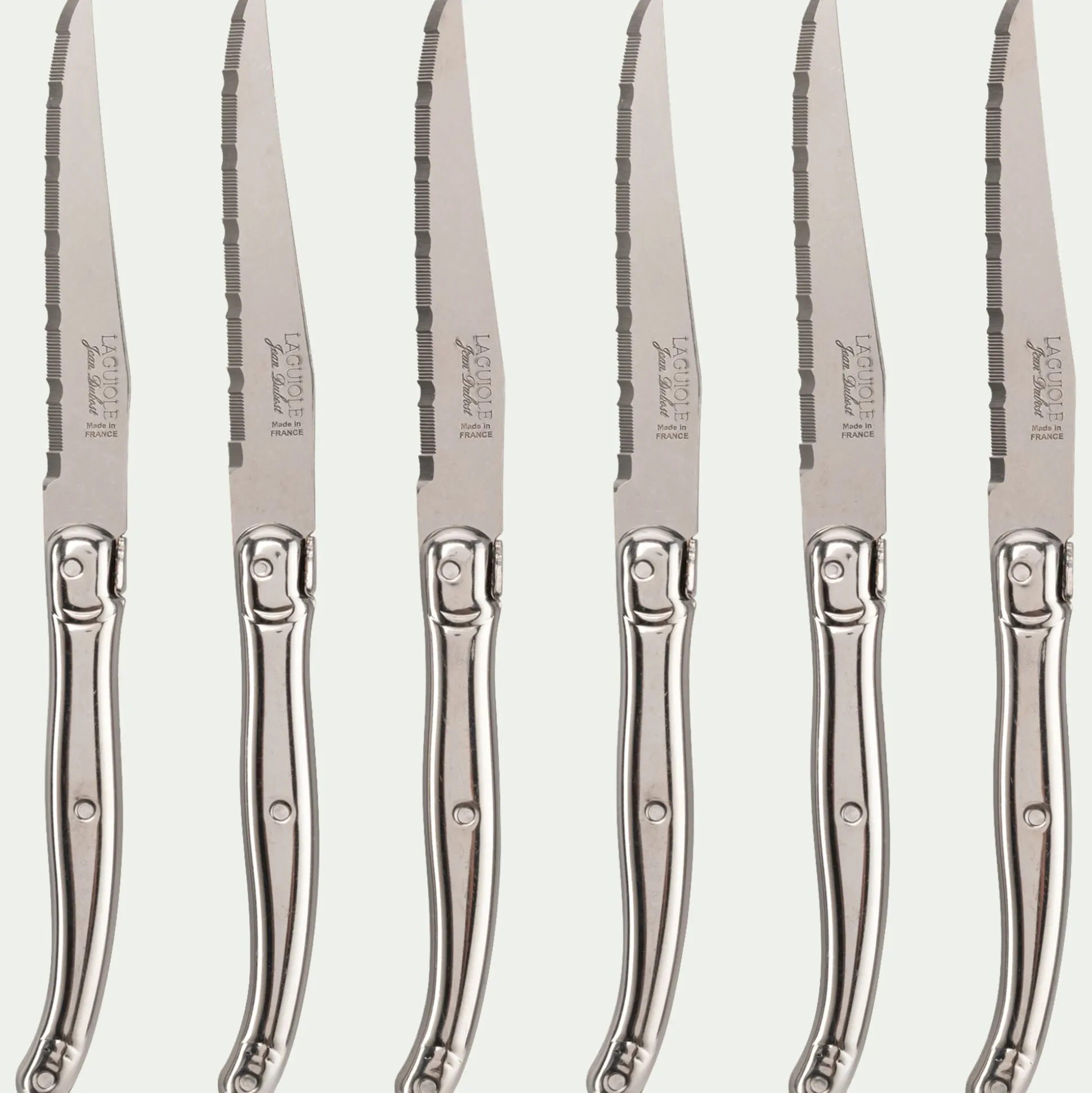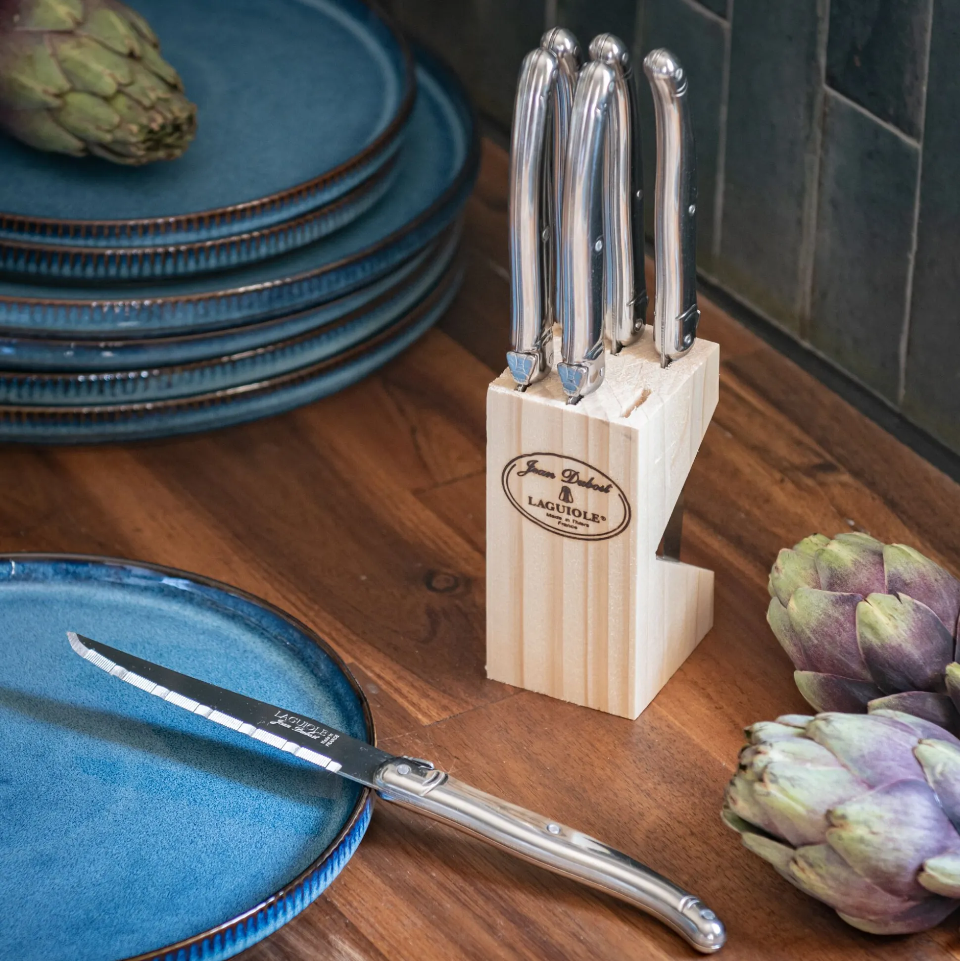 Complétez vos ustensiles de cuisine avec ces élégants couteaux en inox. Leur lame est parfaite pour couper les viandes sans effort et savourer tous vos plats. Ce bloc de 6 couteaux trouvera aisément sa place dans votre cuisine. Ces couteaux à steak sont parfaits pour compléter votre dressage de table. De fabrication française, ses couteaux sont de très bonne qualité.