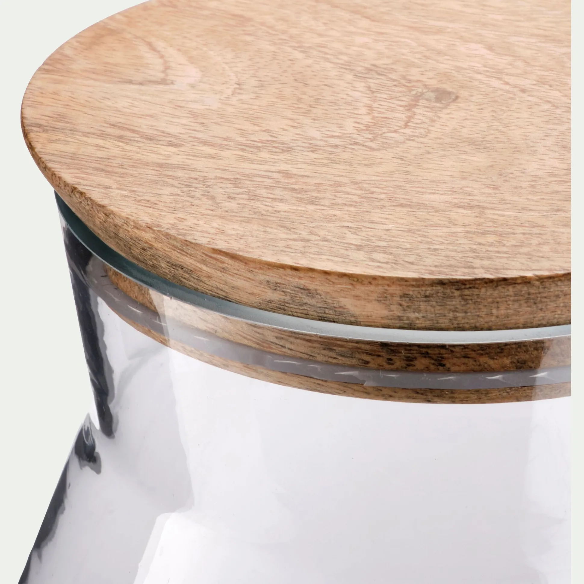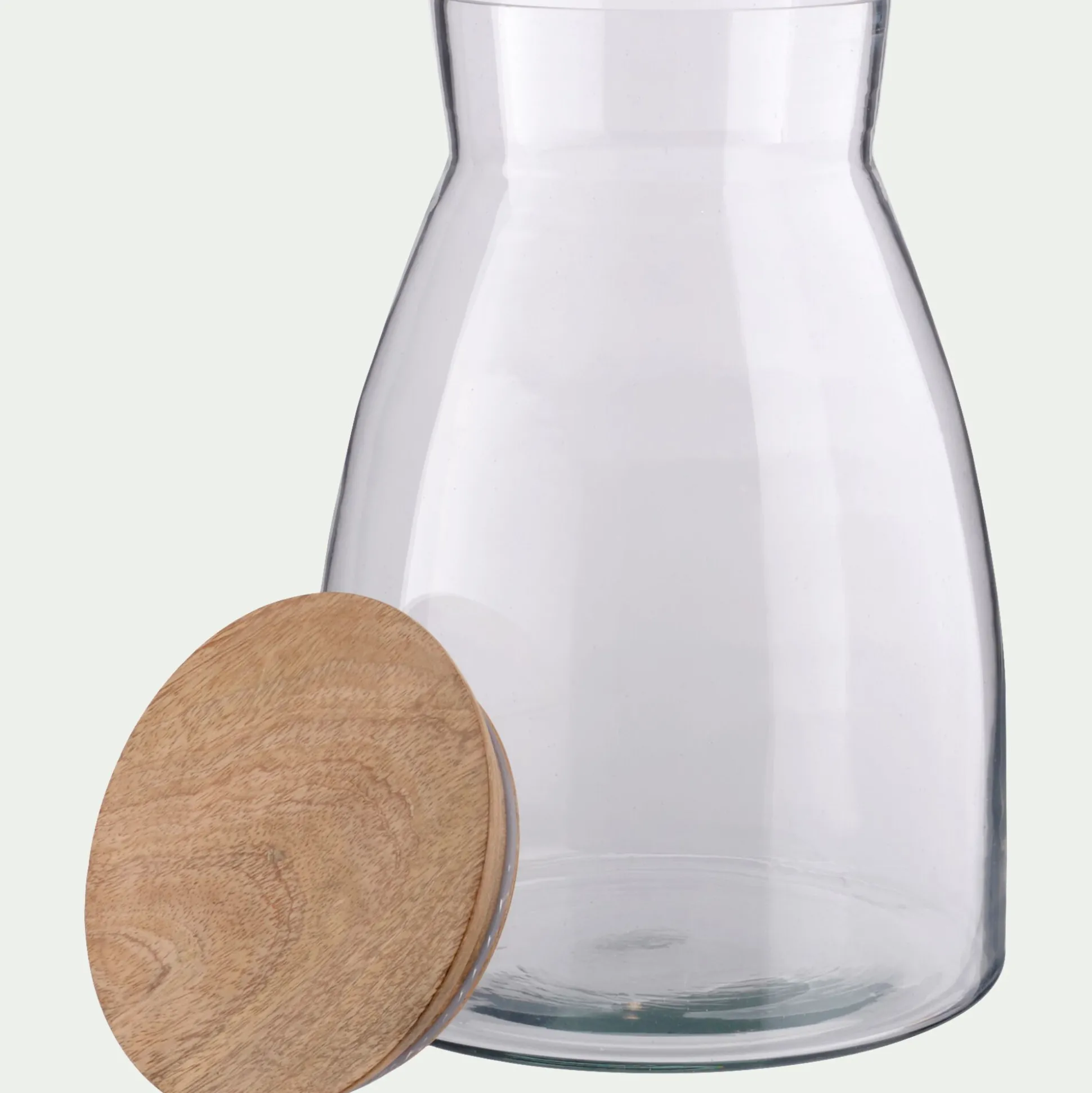 Avec les bocaux de conservation Bloca, votre cuisine gagne en élégance. Vos rangements s’harmonisent et mettent en valeur le produit brut : pâtes, riz, lentilles ou encore jus de fruit. En effet, ce bocal transparent arbore une forme inspirée de la bouteille. Ainsi, il permet de conserver vos boissons au frais, le tout avec une touche déco. Fabriqué en verre, ce grand bocal de 4L s’accompagne d’un couvercle en bois de manguier, une essence authentique qui apporte une touche chaleureuse à cet objet polyvalent.