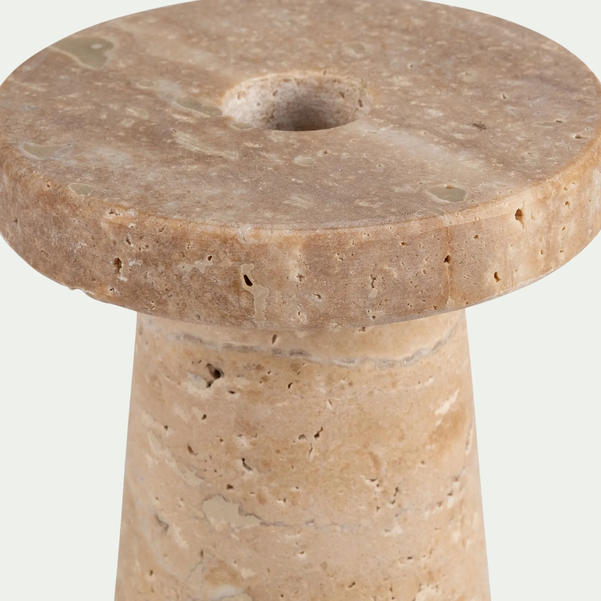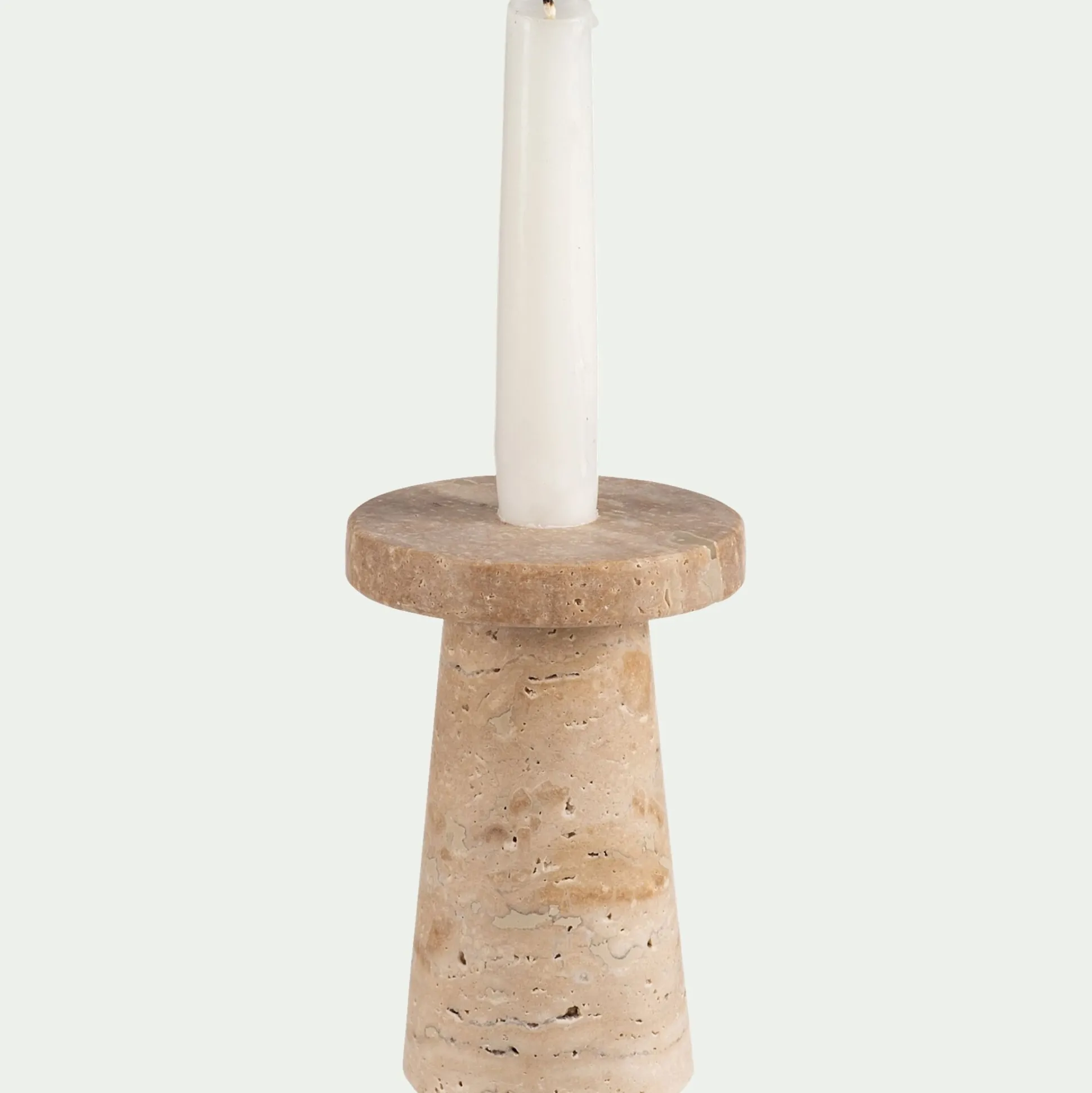 Fabriqué en travertin, une pierre calcaire naturelle pleine de caractère, le bougeoir Gournay incarne l’authenticité. Sa taille discrète met parfaitement en valeur une bougie chandelle, ajoutant une touche cosy et chaleureuse à vos soirées. Un objet déco raffiné, idéal pour sublimer votre intérieur avec élégance.
