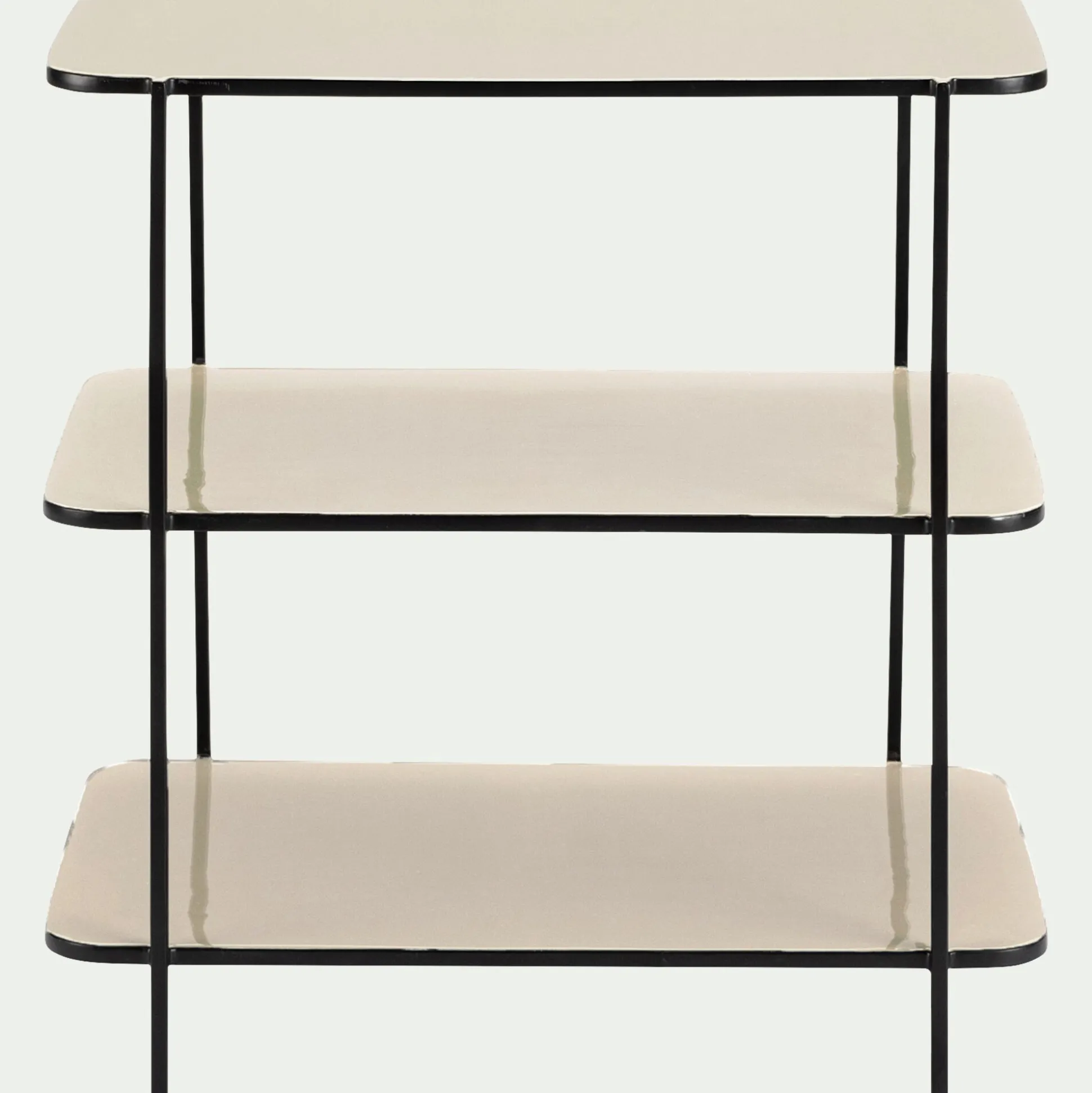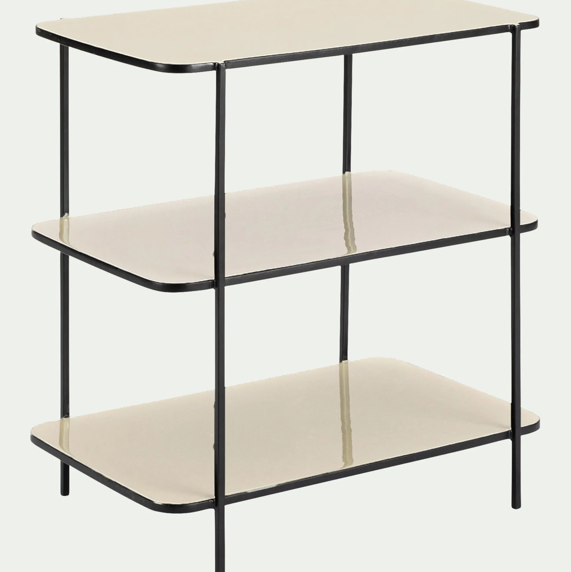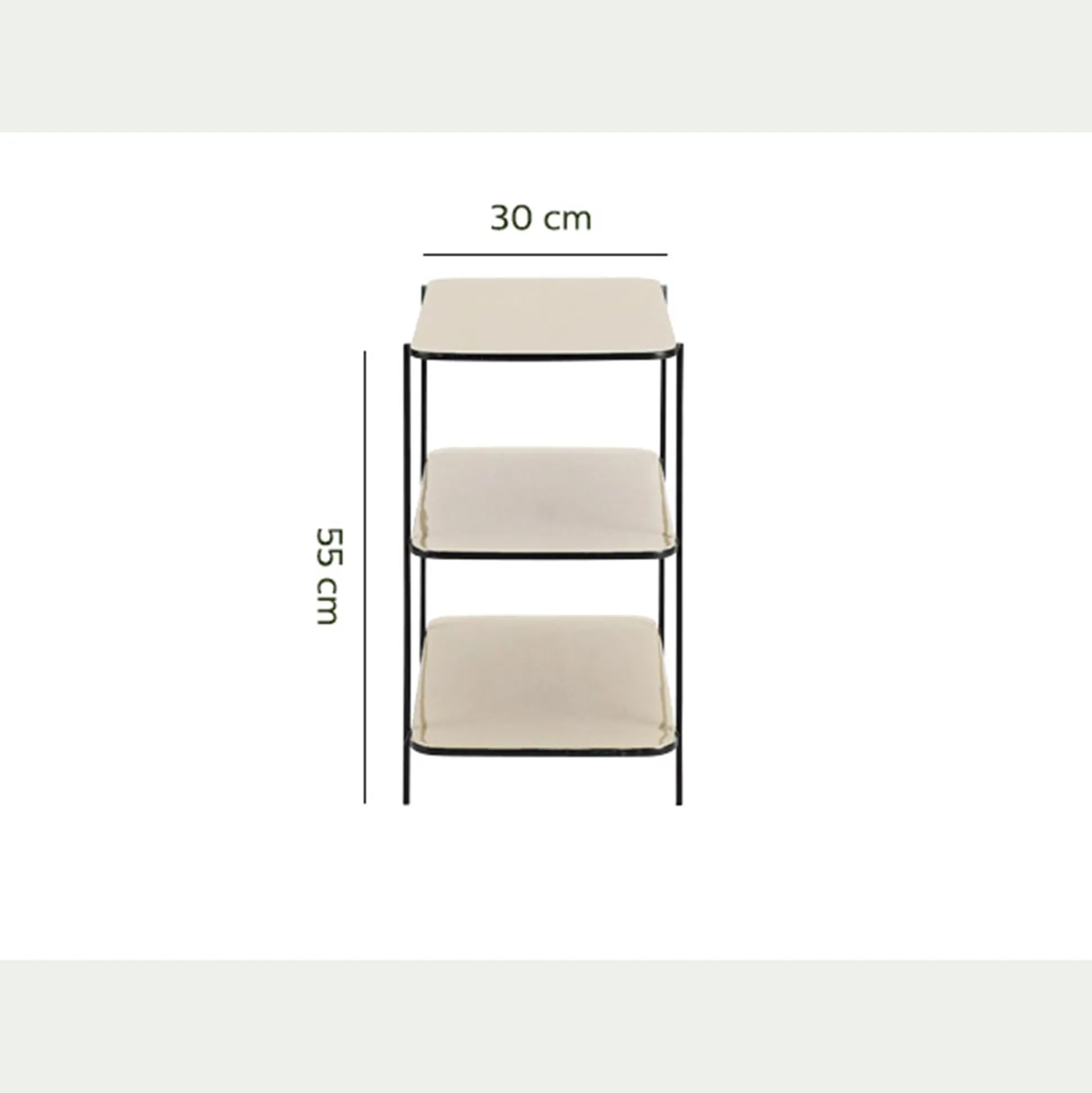 Donnez une touche de modernité et de fonctionnalité à votre intérieur avec ce bout de canapé en acier. Avec ses élégants piètements noirs et ses trois plateaux blancs écru, cette petite table d’appoint apporte une allure contemporaine et épurée à votre salon. Pratique et esthétique, ce bout de canapé est constitué de trois plateaux qui vous permettent d’exposer vos objets décoratifs, livres ou plantes, tout en optimisant l’espace de votre pièce. Polyvalent, il est l’accessoire idéal pour créer un coin à la fois fonctionnel et au charme inégalable près de votre canapé.