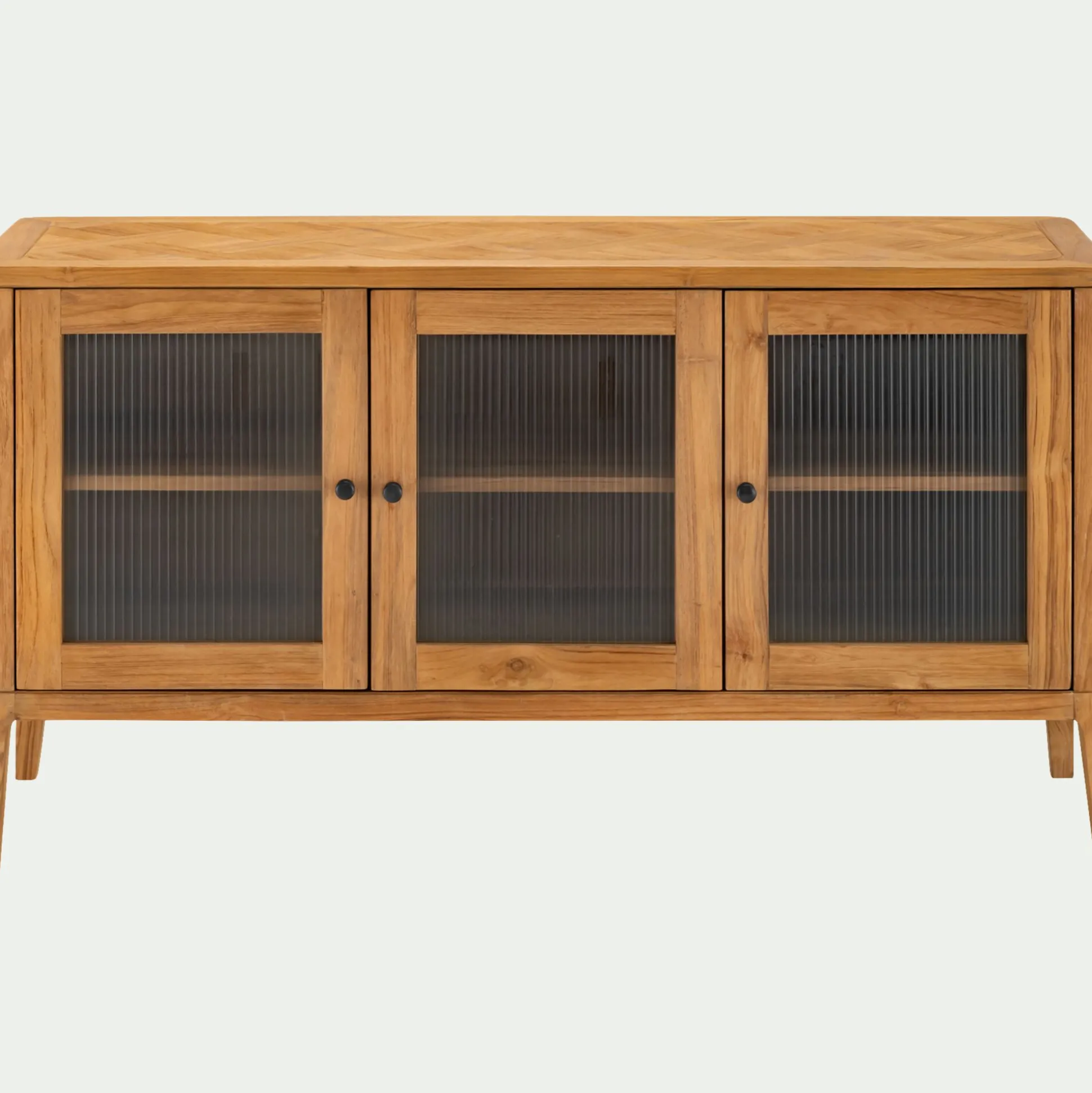 Le buffet bas en bois Leucade allie solidité et élégance grâce à ses portes vitrées, créant un équilibre harmonieux entre les matières. Son design imposant s’allège visuellement par la présence du verre, apportant une touche de délicatesse à l’ensemble. Les 3 portes battantes s’ouvrent sur 6 niches de rangement, idéales pour organiser la vaisselle, des livres ou des objets décoratifs. Fonctionnel et esthétique, ce buffet enrichit le salon et facilite le quotidien avec un espace de rangement pratique et élégant.