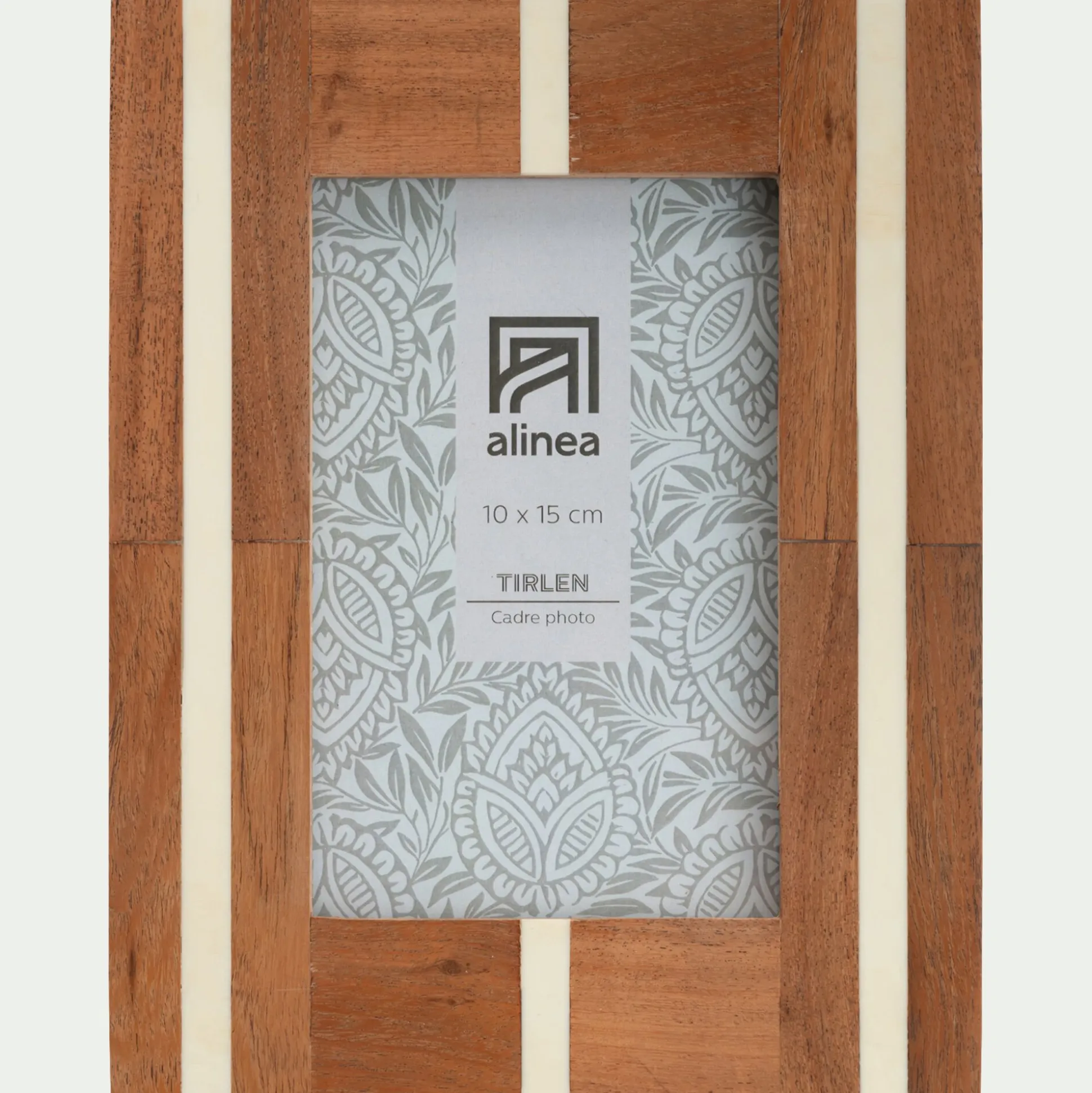 Capturez l’essence de vos plus beaux souvenirs avec le cadre photo Tirlen. Confectionné en bois, ce cadre rectangulaire souligne naturellement une photo de 10×15 cm. Cette dernière est mise en valeur par un motif intemporel et élégant : de belles rayures blanches qui se détachent du bois. Ce cadre à poser vous embarque pour une escapade au cœur de vos souvenirs.