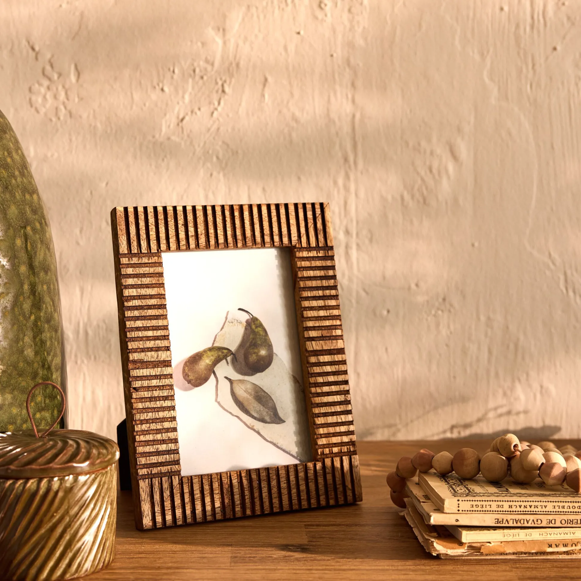 Ce cadre photo en bois de manguier séduit par son charme brut et authentique. Le bois est finement travaillé et strié, créant un jeu de texture et de relief qui attire le regard. Sa teinte chaleureuse s’accorde à tous les intérieurs, du plus épuré au plus rustique. À poser sur une commode ou une étagère, ce cadre en bois met en valeur chaque cliché, protégé derrière une vitre en verre.