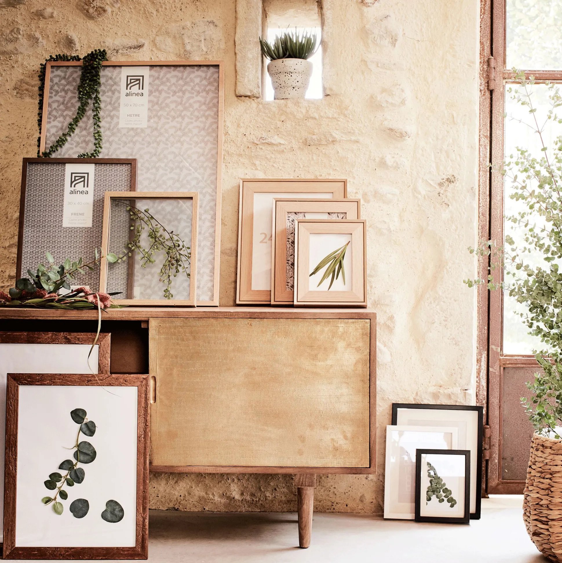 Tous les cadres en bois massif de la gamme Embrun ont le label PEFC, gage de qualité. La provenance du bois de Chêne est issue de la France et de l’Europe. Ce bois tendre est très apprécié en décoration car il se marie avec tous les styles. Afin de limiter les effets des déchets plastiques sur la planète, cette gamme est uniquement recouverte d’un film transparent pour la protéger l’ensemble.