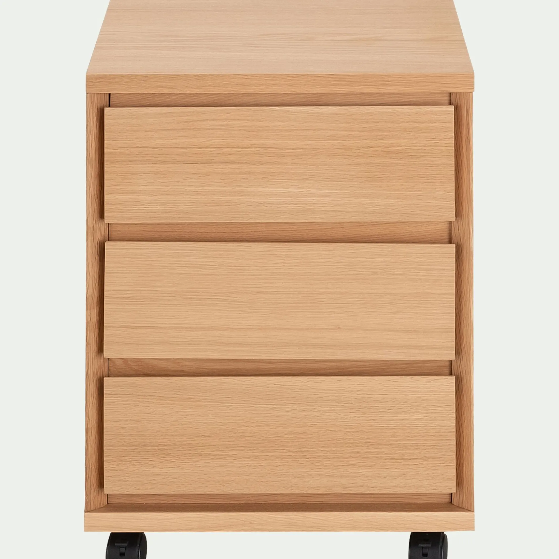 Un caisson de bureau qui joue la carte de l’authenticité et du naturel. Ses trois tiroirs offrent la possibilité d’y ranger vos accessoires de bureau et vos documents. Monté sur des roulettes, ce caisson en bois se déplace facilement aux quatre coins de la pièce. Les lignes droites et épurées de ce meuble lui permettent de se combiner au bureau Agosta de la même gamme.