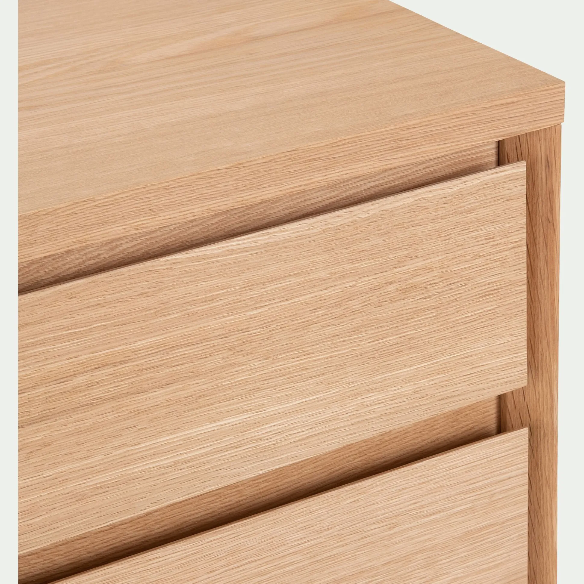 Structure en panneaux de fibres de particules de moyenne densité en placage chêne blanc finition vernis.