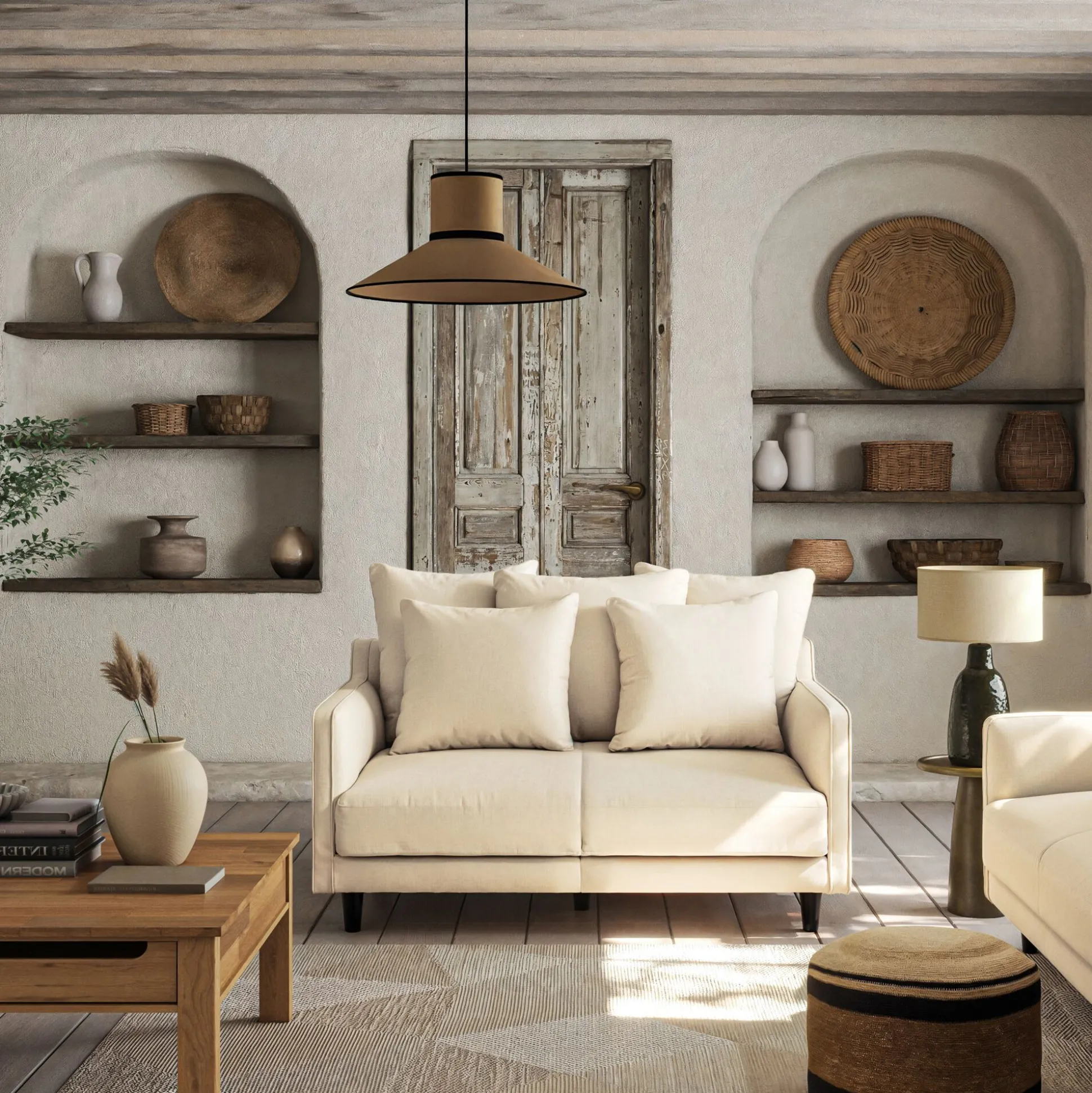 Canapé 2 places droit convertible matelas Bultex en tissu joint – beige roucas