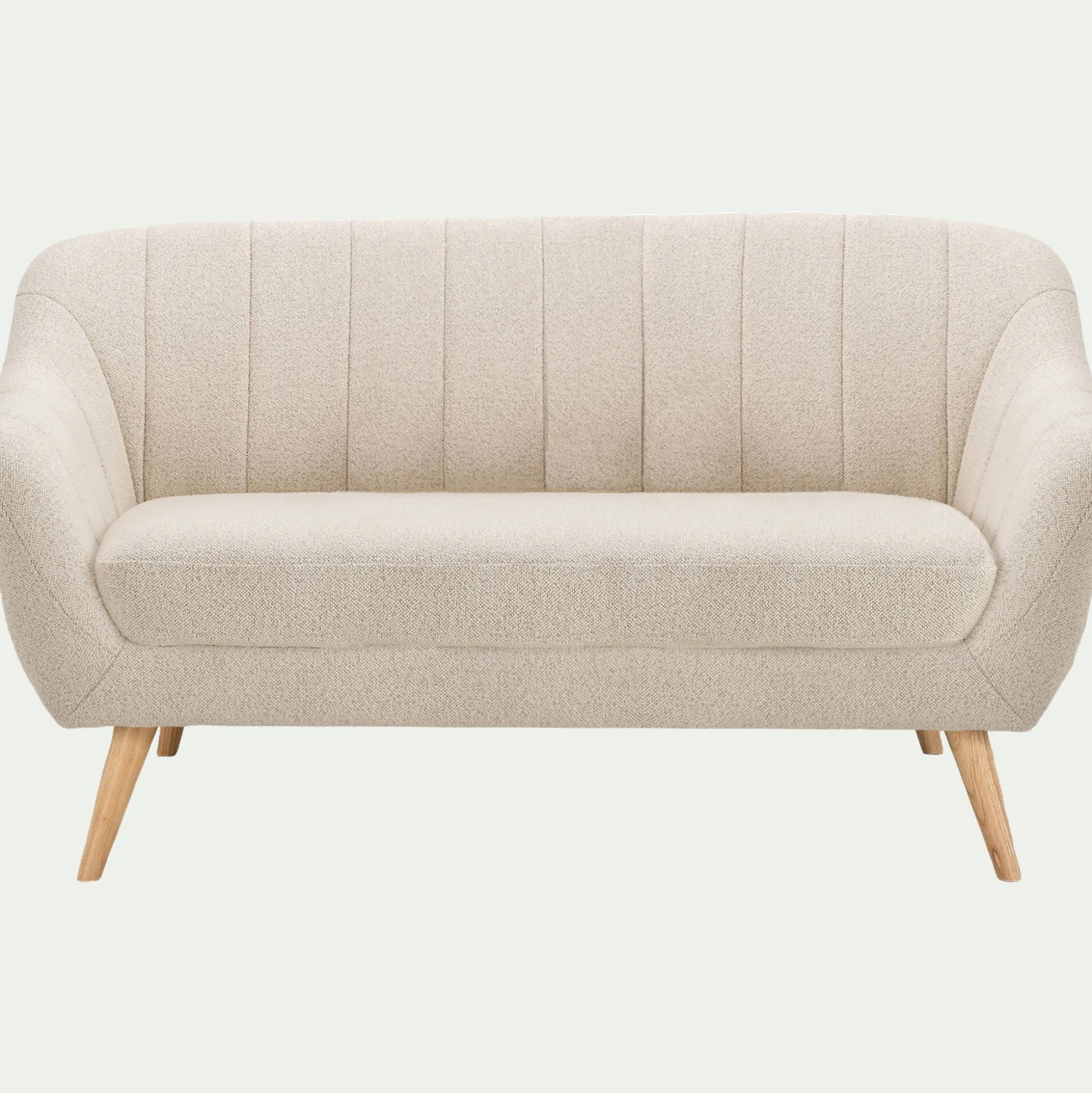 Créez une ambiance élégante avec ce canapé 2 places beige. Avec son assise moelleuse et son dossier matelassé, il offre un excellent confort d’assise. Son coloris beige adoucit votre décoration d’intérieur et apporte une note lumineuse à l’ensemble. Ce canapé en tissu bouclette est souligné par un piètement en hévéa, une essence de bois claire qui couronne le tout d’une touche chaleureuse. Résolument rétro, le design de ce canapé s’inspire d’une coquille Saint-Jacques. Découvrez le reste de la gamme Shell qui se compose de canapés, de poufs et de chaises pour vous offrir un bel ensemble qui saura mettre en valeur votre pièce de vie.