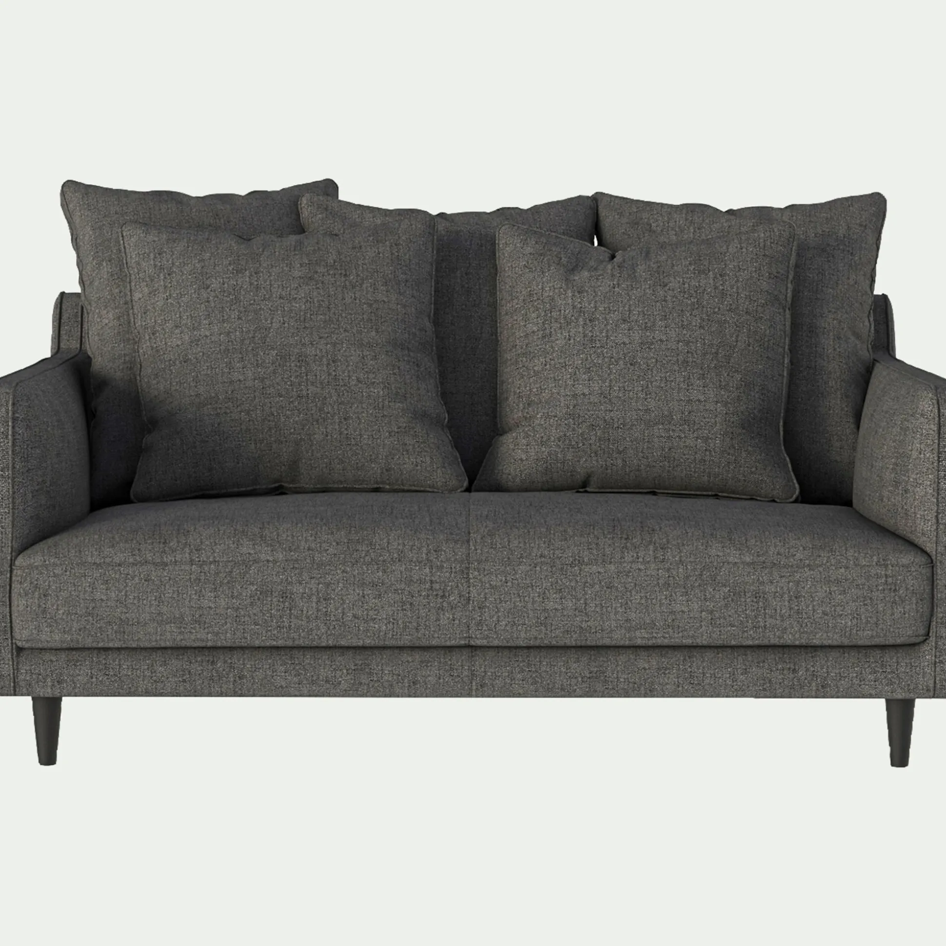 Assise et dossier : Assise en mousse polyuréthane densité 30kg/m3 et couette en fibre polyester. Coussins dossier garnissage plumes d’oies et fibre polyester, 3 coussins de dos 60x60cm et 2 coussins de dos 50x50cm.
