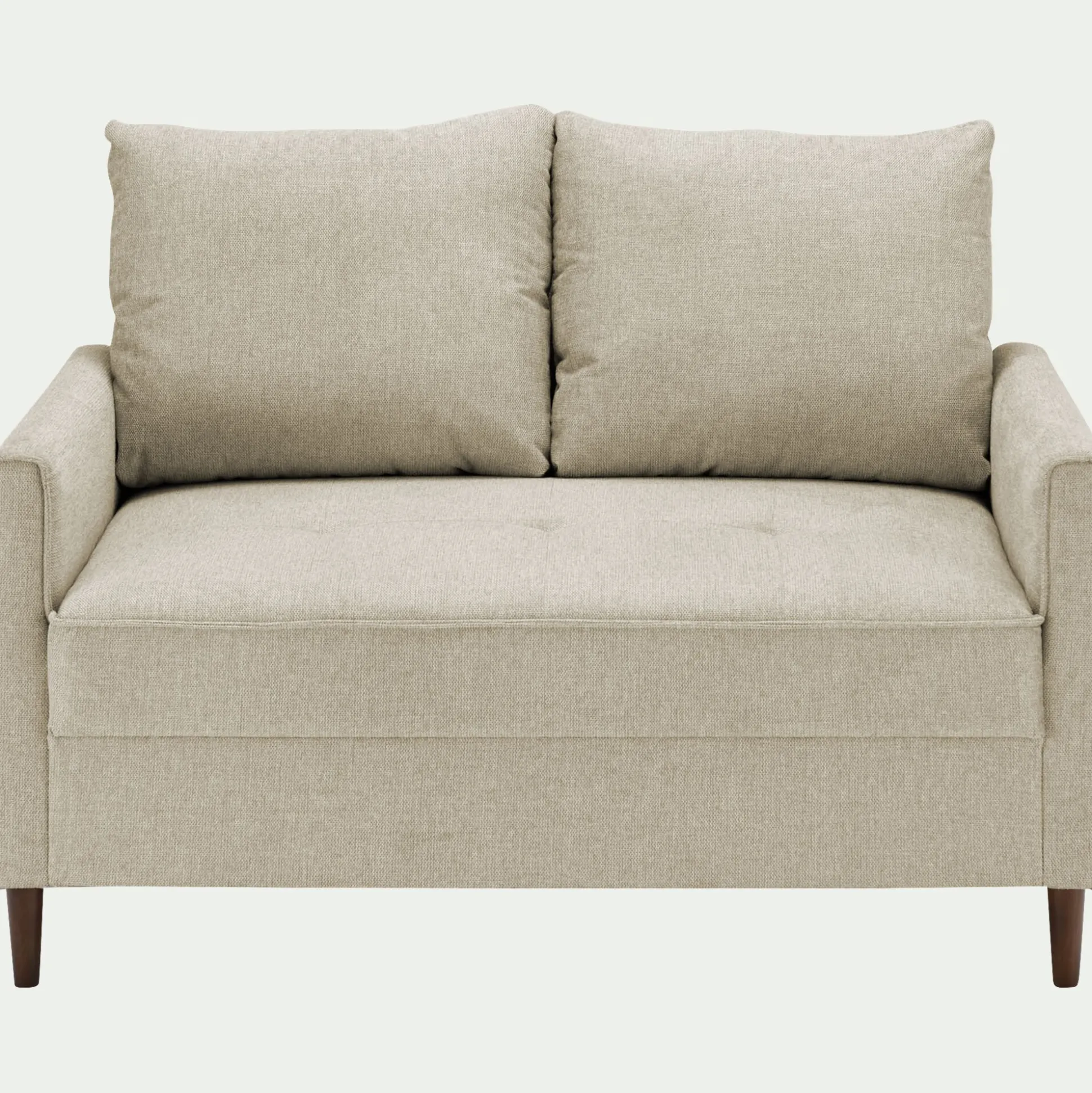 Pensé pour s’adapter à chaque intérieur, ce canapé 2 places permet de vous détendre sans prendre une grande place dans la pièce, il se place selon les envies et l’agencement de votre intérieur. Sa structure en bois accueille une assise en mousse généreuse, complétée par trois coussins de dos qui offrent un soutien optimal aux lombaires et aux épaules. Son revêtement en tissu beige, à la fois profond et naturel, habille ce canapé d’une élégance intemporelle. Il repose sur des pieds en bois de hêtre qui renforcent son allure chaleureuse et naturelle. Compact avec ces 132 cm de long, ce canapé 2 places fabriqué en Roumanie est idéal pour conjuguer style et confort au quotidien, même dans un petit salon.