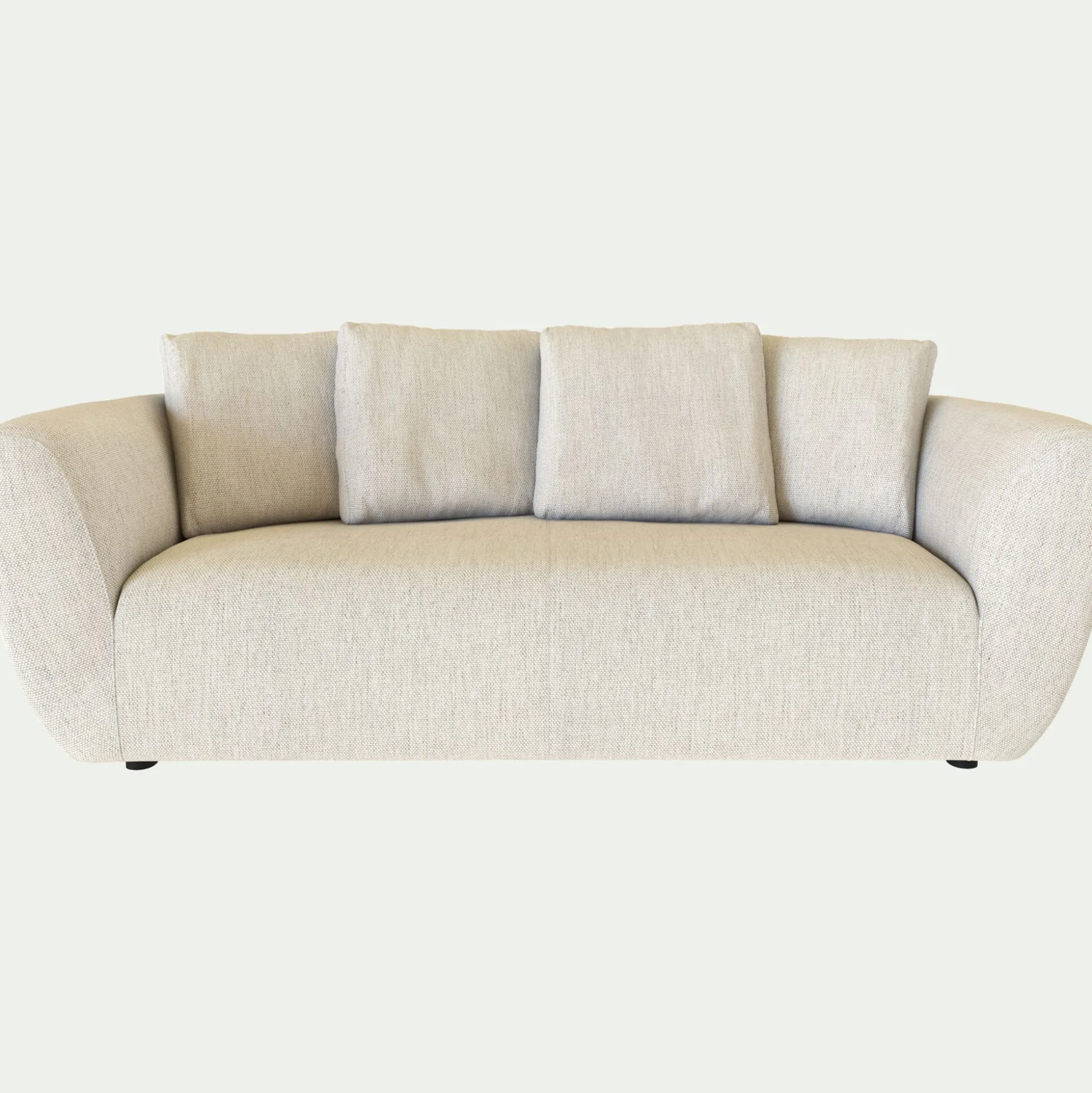 Avec son revêtement en tissu beige alpilles, ce canapé 3 places conjugue douceur et élégance. Son tissu armonia met en valeur chaque courbe, apportant une touche raffinée à l’espace. Le beige, teinte apaisante et naturelle, trouve facilement sa place dans une décoration intemporelle, qu’elle soit contemporaine, bohème ou vintage. Son assise moelleuse invite à la détente, tandis que son dossier partiellement garni de plumes d’oie enveloppe de confort. Pensé pour durer, ce canapé fixe repose sur une structure en bois certifié FSC. Ses coussins de dos déhoussables facilitent l’entretien. Une pièce fabriquée en Italie, où design et confort s’unissent avec subtilité.
