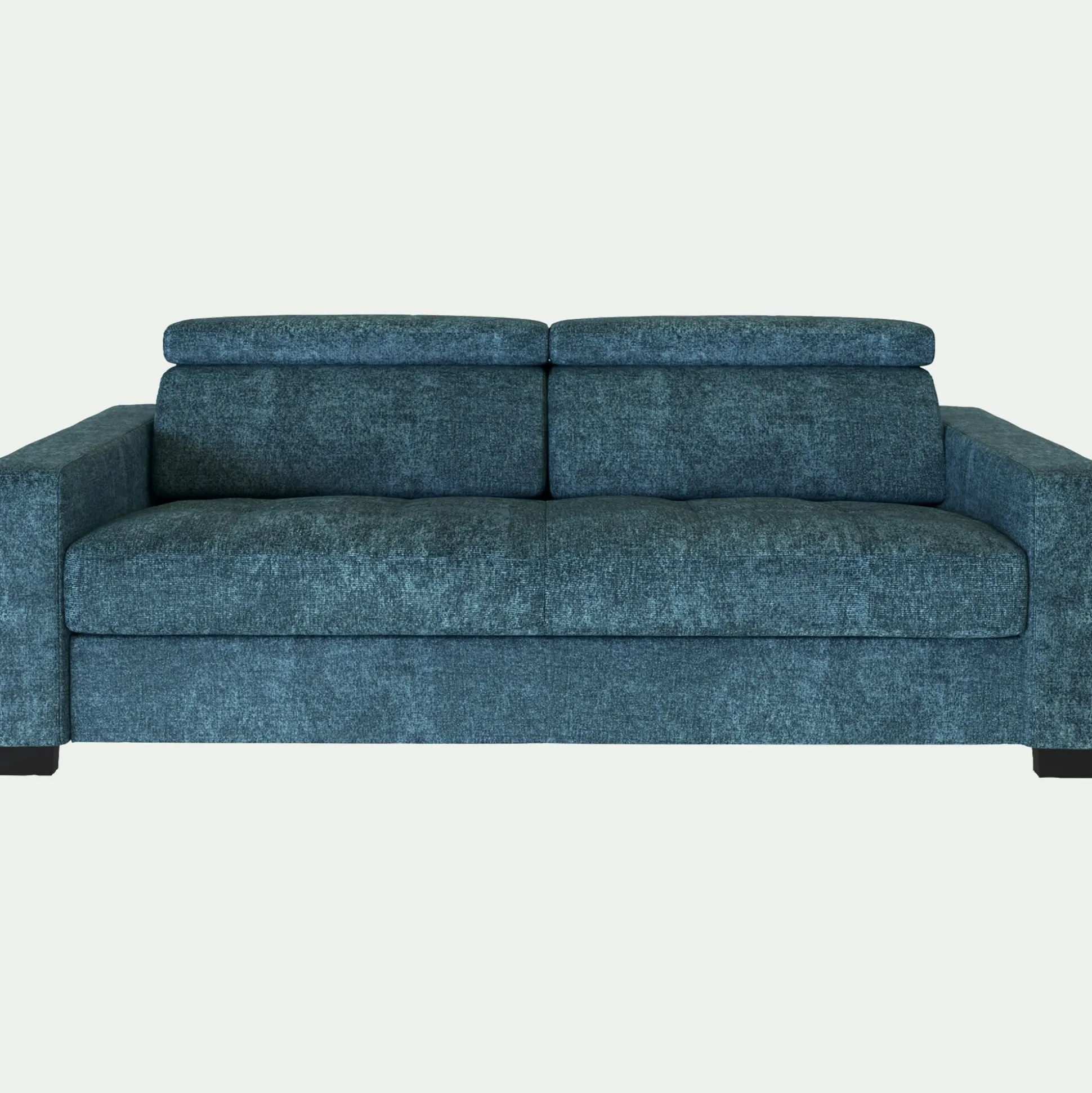 Ce canapé droit 3 places ajoute au selon une élégance intemporelle et un confort remarquable. Confectionné en Italie, il repose sur une structure robuste en bois certifié FSC, garantissant une grande durabilité dans le temps. Son assise et son dossier en mousse offrent un accueil moelleux, idéal pour les instants de repos. Revêtu de tissu, ce canapé fixe propose un toucher agréable été comme hiver. Ce canapé en tissu arbore notre coloris bleu figuerolles, une nuance empreinte de douceur et de l’esprit méditerranéen. Son design sobre et raffiné s’intègre facilement dans différents styles, du contemporain au plus classique. Ses accoudoirs de 20 cm et ses têtières inclinables participent à un confort incomparable.