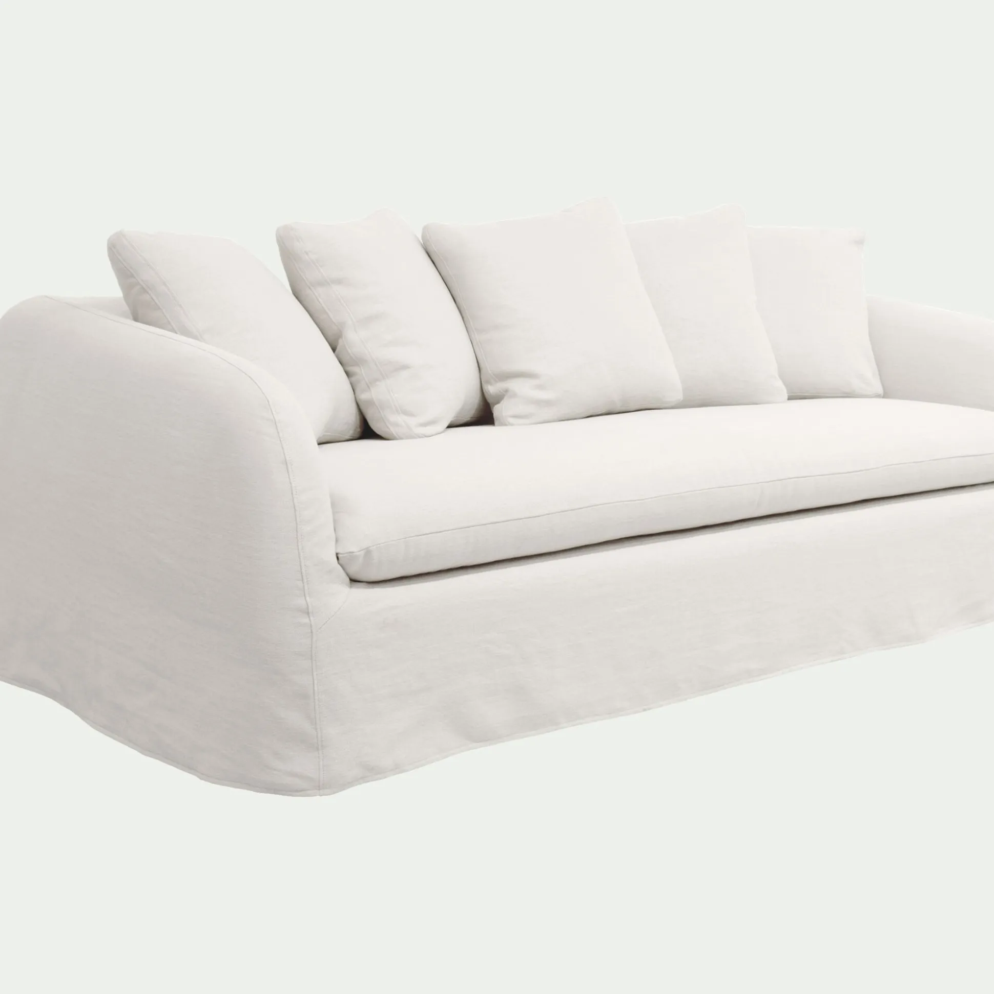 Le canapé Marcel est une ode à la ville de Marseille et à son patrimoine. Son nom fait écho à la provence en rendant hommage à sa culture. Conçu pour 4 personnes, ce canapé au design singulier donne de l’allure à votre salon tout en offrant une grande assise. Ses multiples coussins font de lui un canapé plus douiller et chaleureux. Son tissu en lin, son design en rondeur et sa jupe lui donnent une élégance incontestable. Le lin, un tissu naturel symbole de pureté et de confort, vous offre une douceur qui vous bercera au fil des saisons. Extrêmement résistant et réputé pour ses qualités thermorégulatrices, il vous permettra de vous lover au mieux tout au long des saisons et pendant plusieurs années. En lin blanc, ce canapé noble est un éloge à la Méditerranée.