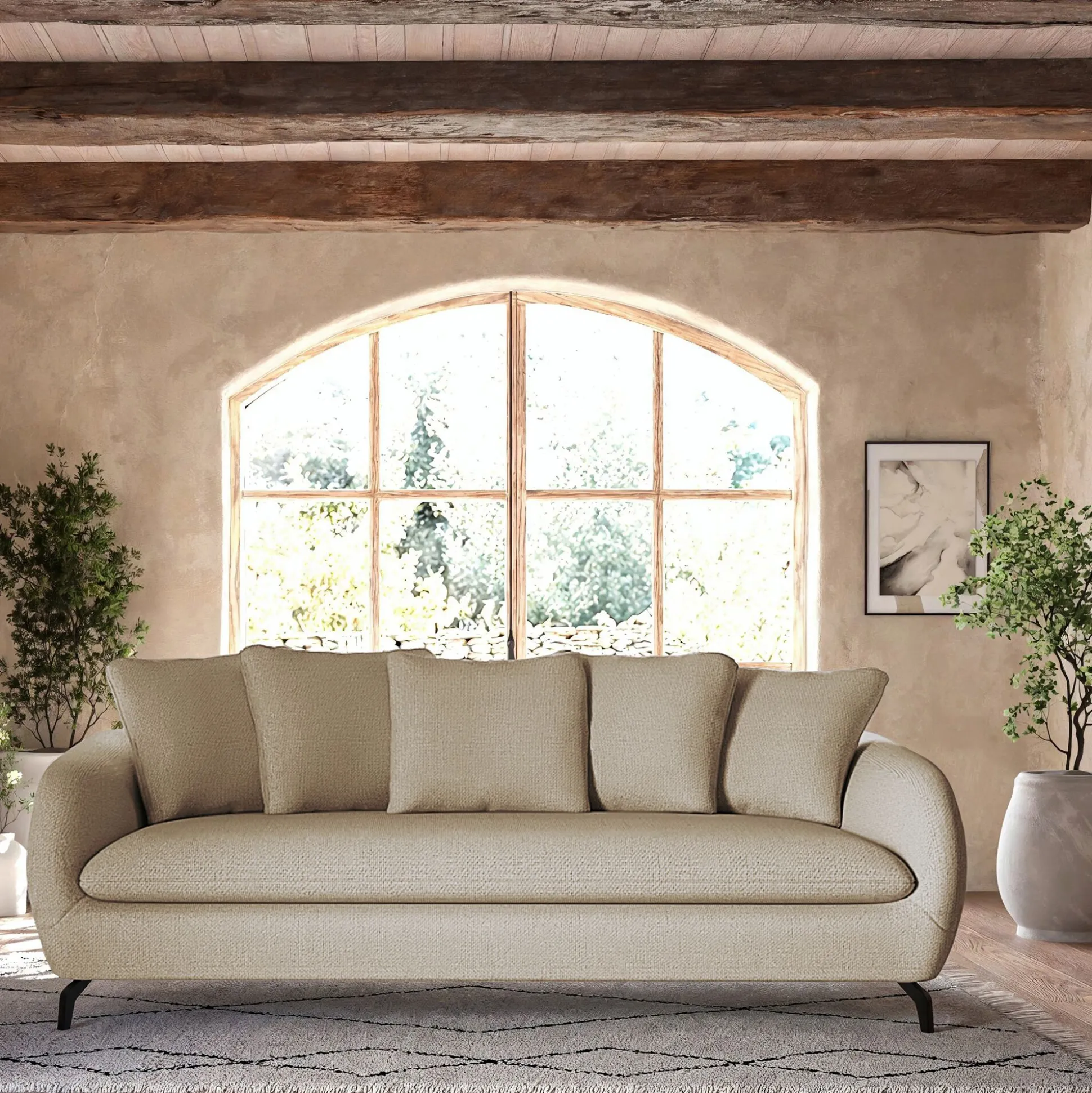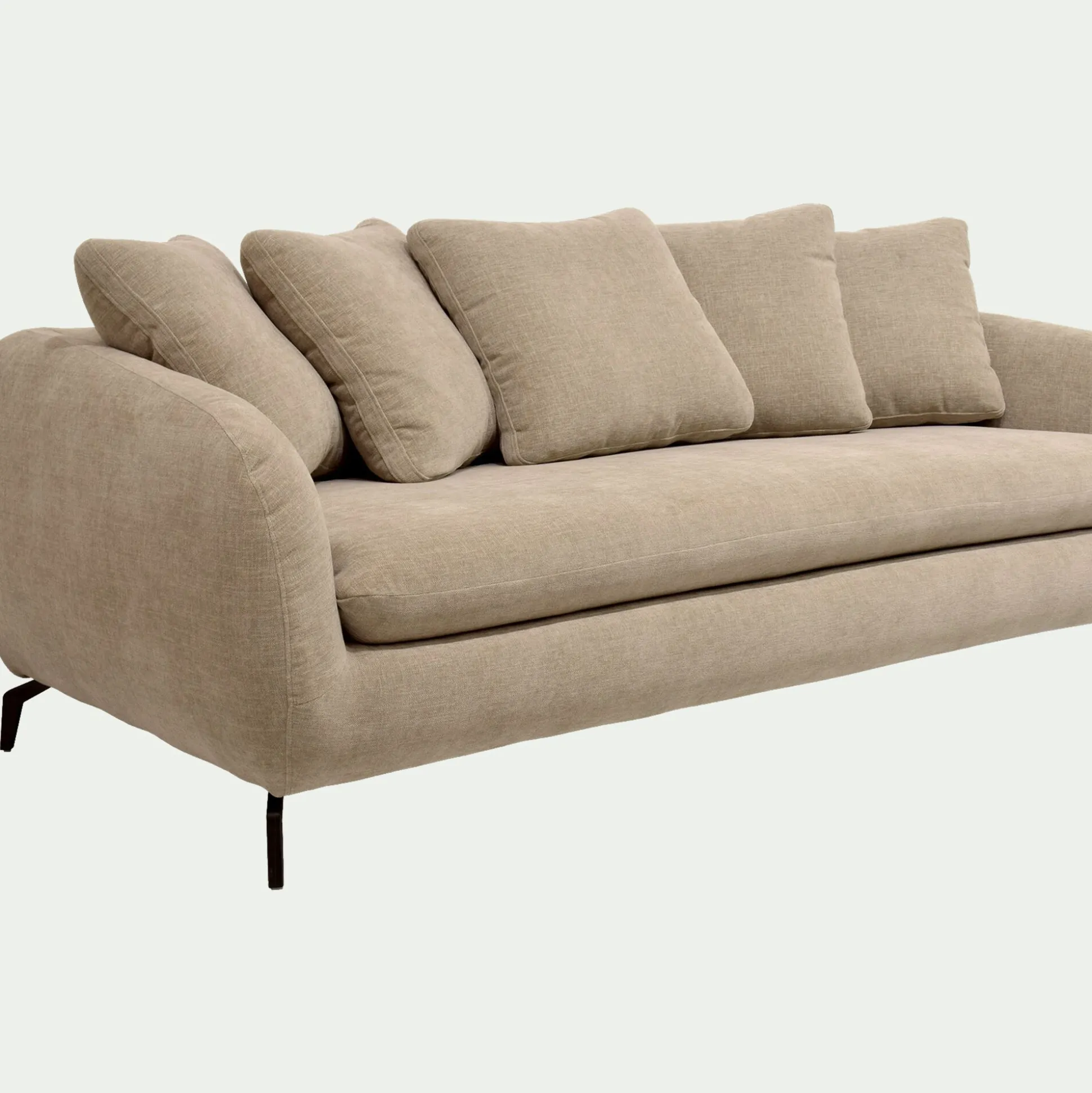 Un joli canapé convertible en tissu pour profiter agréablement de votre salon. Un look contemporain et accueillant, sublimé par un piétement original en acier noir. Vous apprécierez la forme du dossier et des accoudoirs qui vous offrent un maintien optimal de votre dos pour un confort d’assise exceptionnel. Un canapé fabriqué en France, dans des ateliers proches de la ville de Bourge, qui incarne l’excellence du savoir-faire français. Un coloris beige qui apporte une note lumineuse et tendance à votre déco de salon.