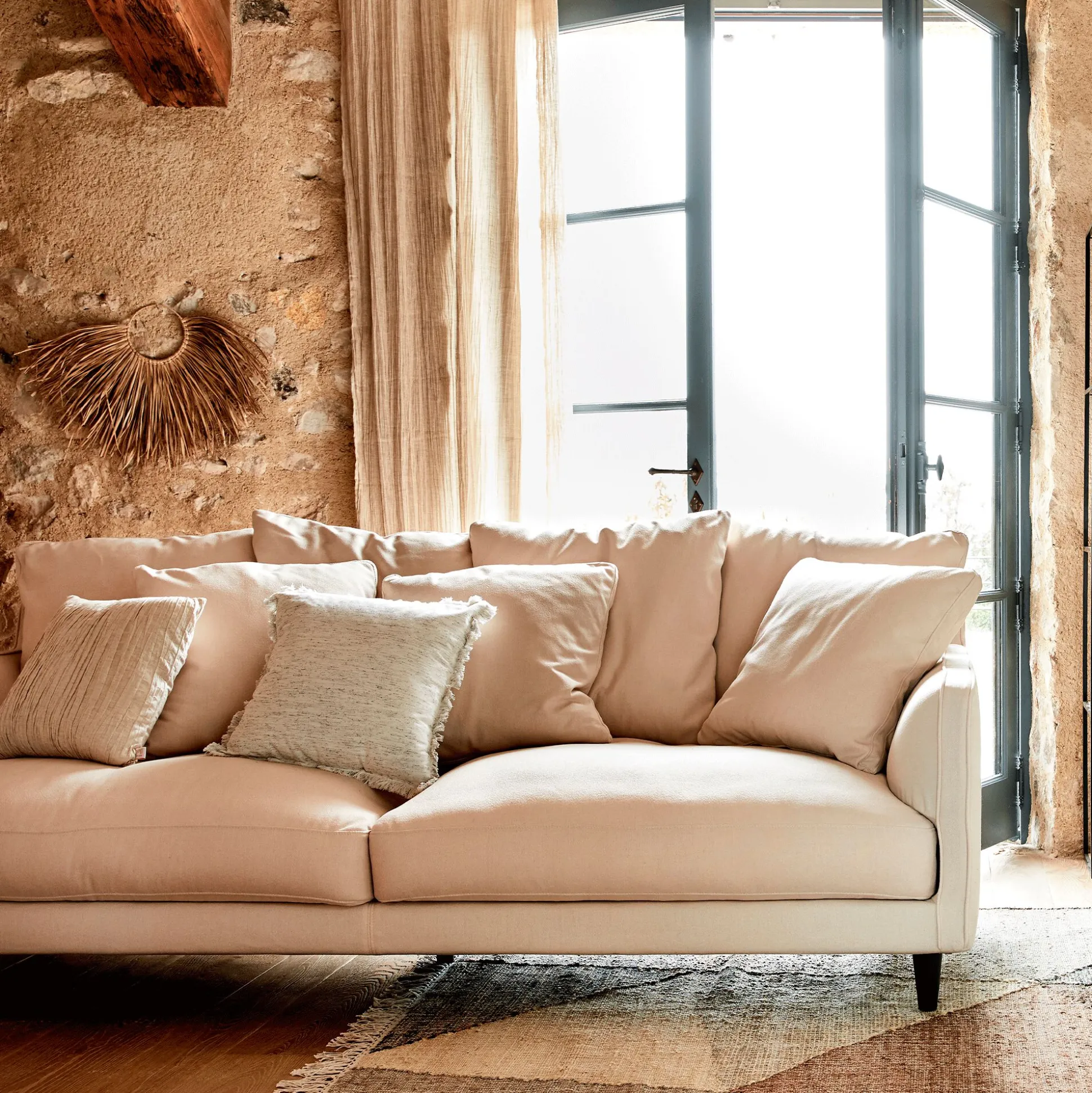 Fabriqué à la main par des artisans italiens avec une tradition ancestrale dans le domaine du siège et de la tapisserie, ce canapé saura séduire les amateurs de déco. LENITA est une remarquable réinterprétation moderne d’un canapé, inspiré de l’époque somptueuse du Second Empire. Installez-vous confortablement dans ce canapé au moelleux immédiatement perceptible garni de plumes d’oie et détendez-vous. Sa ligne, ses courbes, inspirent le raffinement. Son revêtement en tissu très résistant lui confère un toucher doux. Les multiples coussins repositionnables vous donneront le juste confort à tout moment de la journée. Son assise profonde et généreuse invite à la paresse. Il sera incontestablement l’élément phare de votre salon.