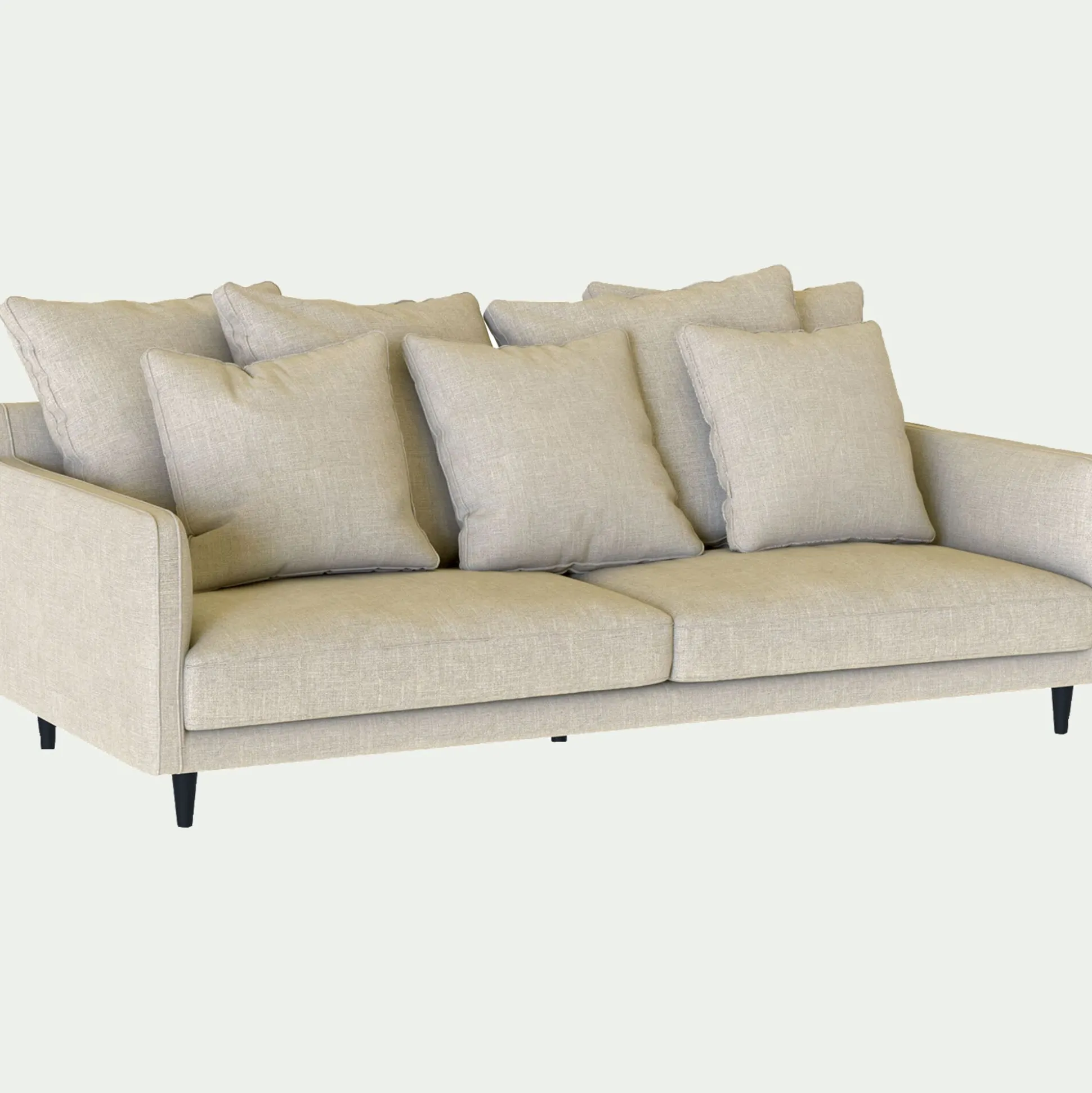 Fabriqué à la main par des passionnés italiens avec une tradition ancestrale dans le domaine du siège et de la tapisserie, ce canapé saura séduire les amateurs de déco. LENITA est une remarquable réinterprétation moderne d’un canapé, inspiré de l’époque somptueuse du Second Empire. Ce canapé fixe de 4 places en tissu mixte, avec sa couleur beige Alpilles, est une façon idéale de décorer son salon d’une pièce raffinée. Installez-vous confortablement dans ce canapé moelleux, garni de plumes d’oies et venez vous détendre pour des moments de pur bien-être. Sa ligne, ses courbes, la préciosité de la matière veloutée inspirent le raffinement. Les multiples coussins repositionnables vous donneront le juste confort à tout moment de la journée. Son assise profonde et généreuse invite à la paresse. Il sera incontestablement la pièce qui vous fera passer de très bons moments cocooning.
