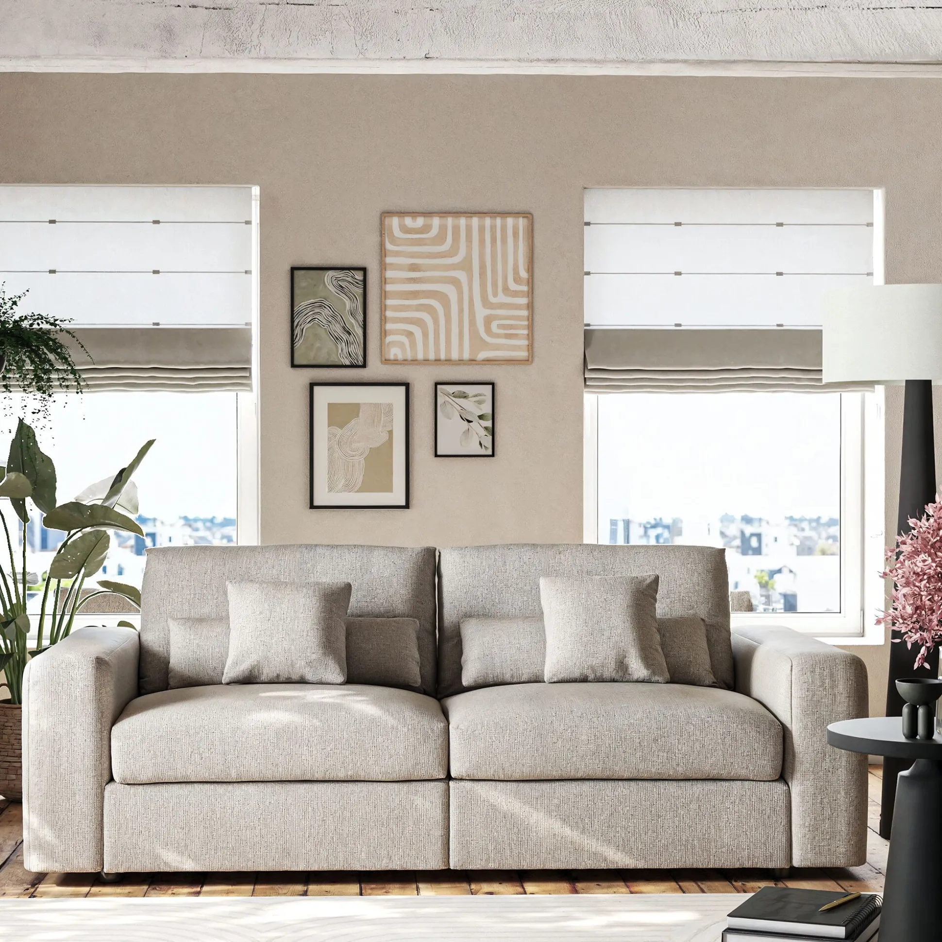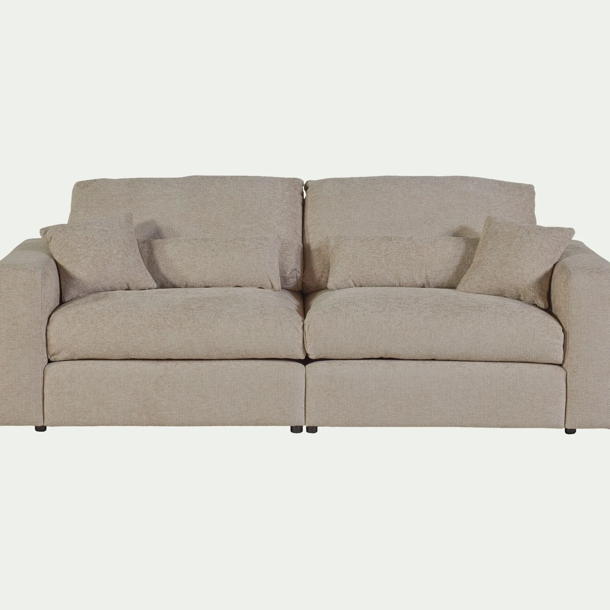 Le canapé Piuma est idéal pour se prélasser dans votre salon. Avec ses grandes assises, ce canapé 5 places fixe en tissu chenille vous offre un confort exceptionnel. Il vous permet de vous détendre au coeur de coussins moelleux qui vous font sentir dans un nuage de douceur, une sensation renforcée par son tissu délicat. Vous pourrez ainsi recevoir famille et amis à partager des soirées conviviales lors d’un moment apaisant. Ce canapé fixe de couleur beige apporte également une touche design moderne et élégante à votre salon. Son tissu chenille donne un côté cocooning qui vous permet de transformer votre pièce en un espace chaleureux. Piuma fait ainsi rimer confort avec esthétisme et élégance.