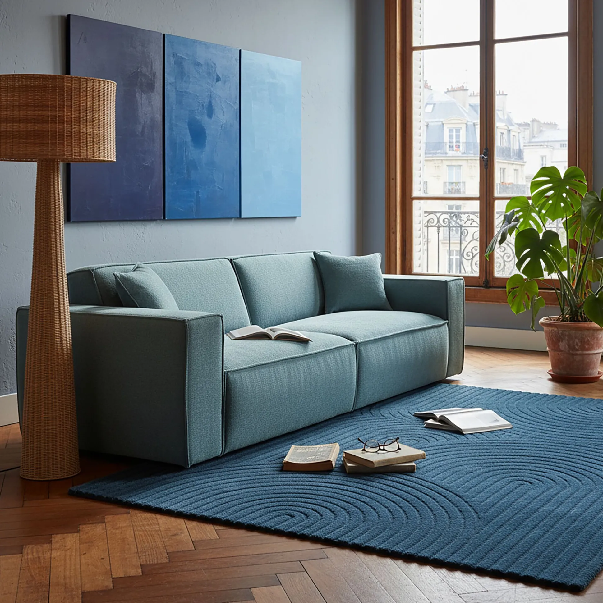 Canapé 5 places fixe en tissu genesis – bleu
