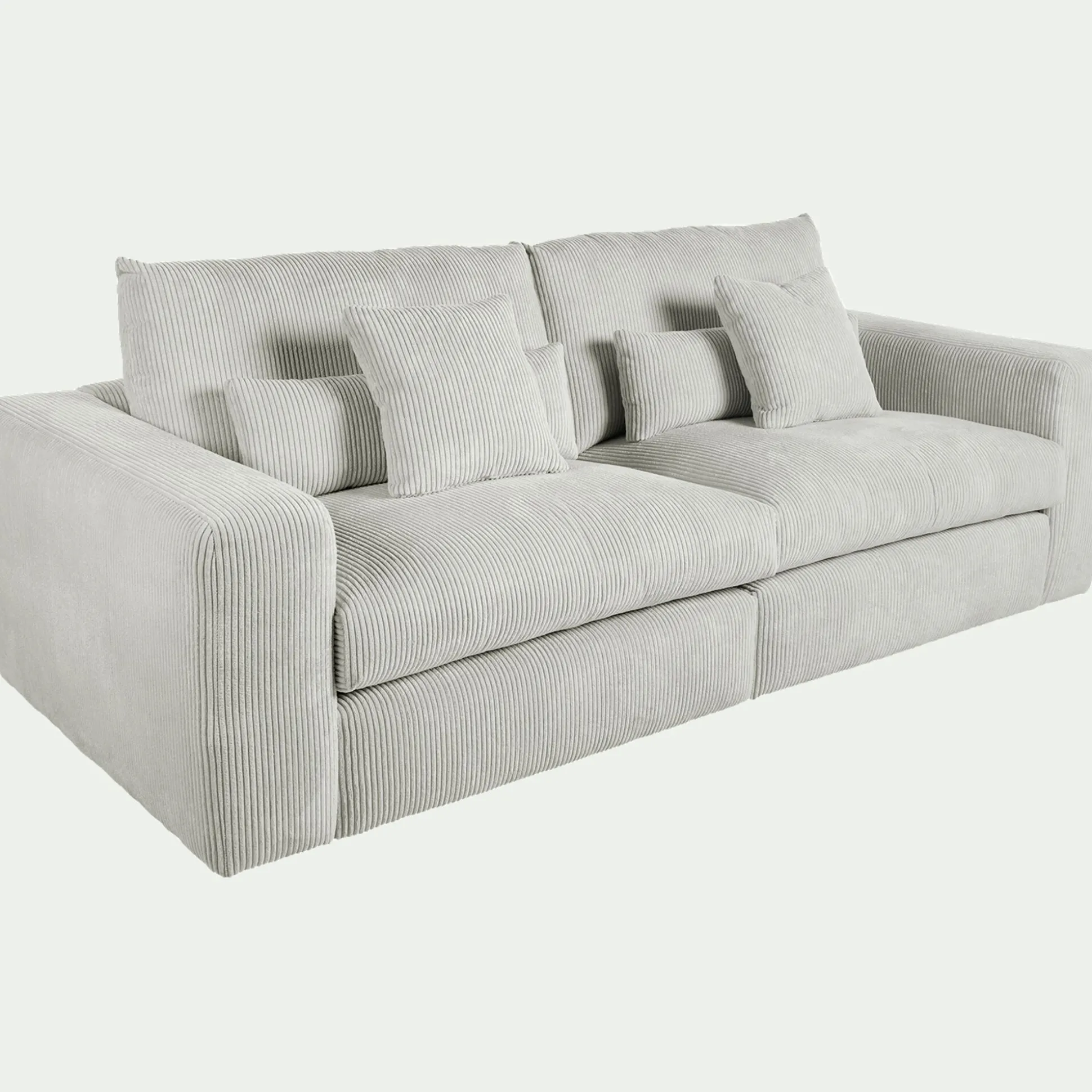 Le canapé Piuma est idéal pour se prélasser dans votre salon. Avec ses grandes assises, ce canapé d’angle droit en velours côtelé vous offre un confort exceptionnel. Il vous permet de vous détendre au coeur de coussins moelleux dans un nuage de douceur renforcé par son tissu délicat. Vous pourrez ainsi recevoir famille et amis lors d’un moment apaisant. Ce canapé 5 places fixe de couleur gris borie apporte également une touche design moderne et élégante à votre salon. Son velours côtelé donne un côté cocooning qui vous permet de transformer votre pièce en un espace chaleureux.
