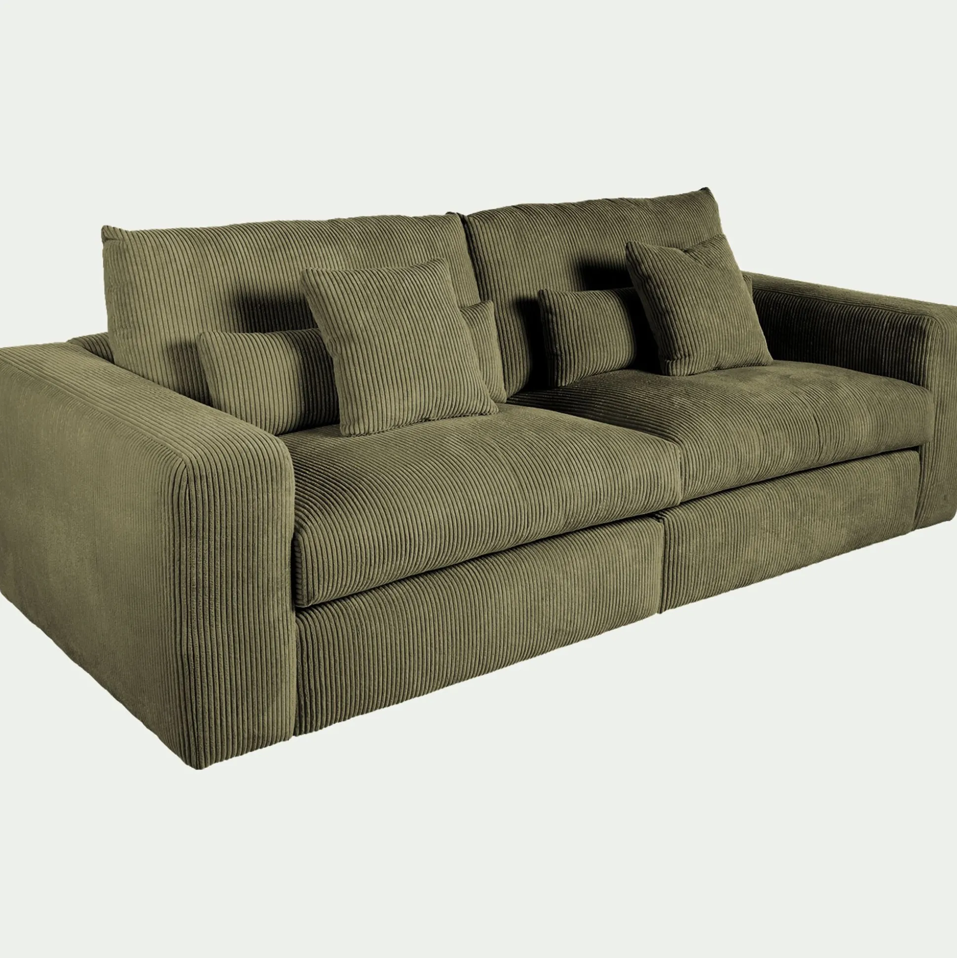 Le canapé Piuma est idéal pour se prélasser dans votre salon. Avec ses grandes assises, ce canapé 5 places fixe en velours côtelé vous offre un confort exceptionnel. Il vous permet de vous détendre au coeur de coussins moelleux qui vous font sentir dans un nuage de douceur, une sensation renforcée par son tissu délicat. Vous pourrez ainsi recevoir famille et amis à partager des soirées conviviales lors d’un moment apaisant. Ce canapé fixe de couleur verte apporte également une touche design moderne et élégante à votre salon. Son velours côtelé donne un côté cocooning qui vous permet de transformer votre pièce en un espace chaleureux. Piuma fait ainsi rimer confort avec esthtisme et élégance.
