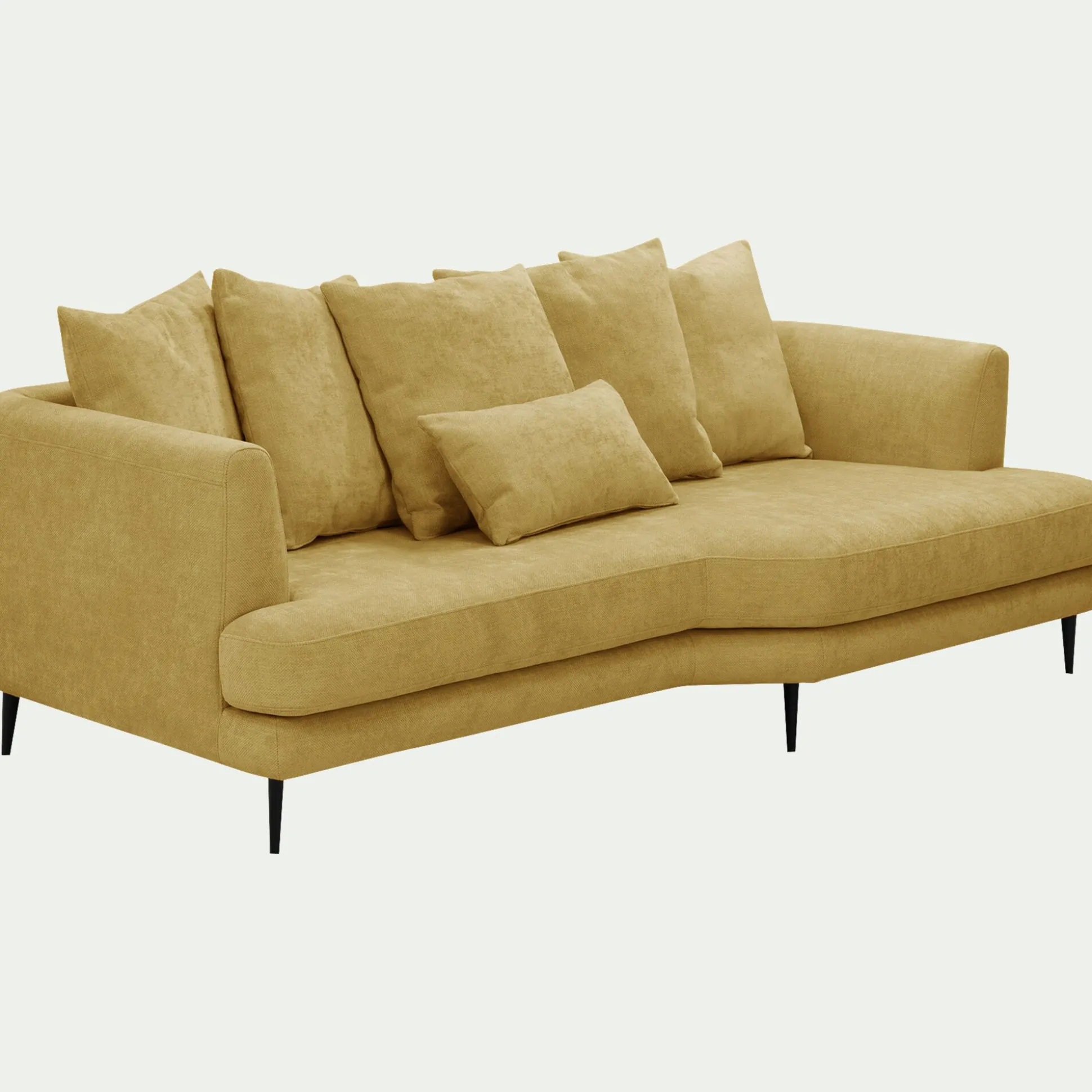 Avec sa découpe originale et asymétrique sur le côté gauche, ce canapé 5 places impose une allure unique et raffinée dans le salon. Son design singulier se marie à l’élégance discrète de son coloris jaune argan, doux et intemporel, pour sublimer la décoration intérieure. Son décroché crée une assise plus profonde, idéale pour savourer des instants de détente dans un confort absolu. À la fois atypique et sophistiqué, ce canapé fixe en tissu devient une pièce maîtresse du séjour et ne manquera pas de séduire les convives par son charme distinctif.