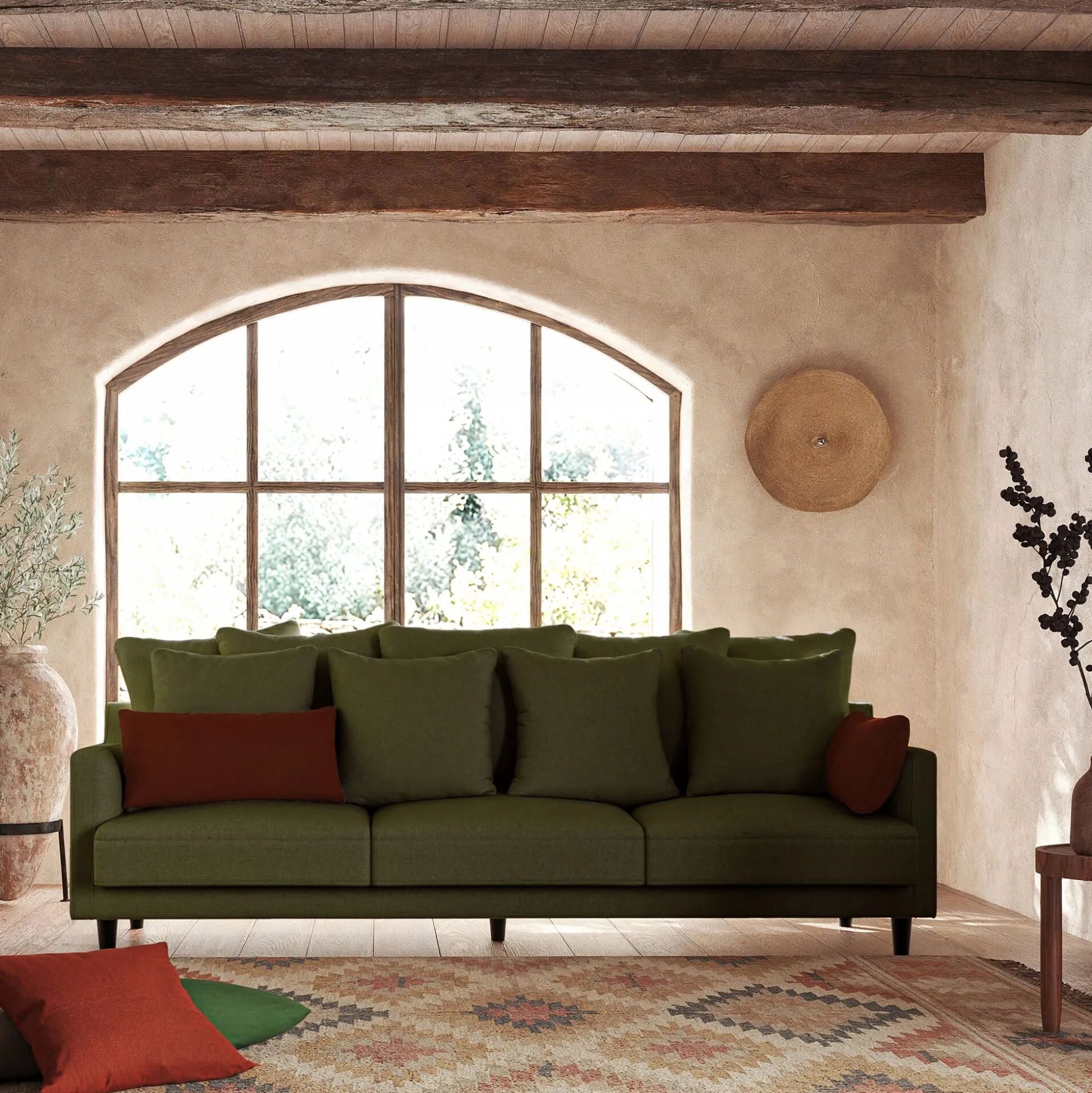 Canapé 6 places fixe en tissu joint – vert cèdre
