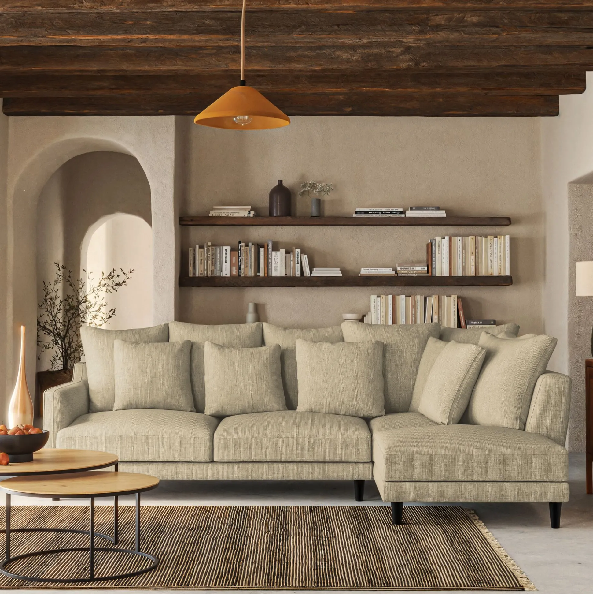 Fabriqué à la main par des passionnés italiens avec une tradition ancestrale dans le domaine du siège et de la tapisserie, ce canapé saura séduire les amateurs de déco. LENITA est une remarquable réinterprétation moderne d’un canapé, inspiré de l’époque somptueuse du Second Empire. Ce canapé avec angle droit convertible de 3 places en tissu mixte, avec sa couleur beige Alpilles, est une façon idéale de décorer son salon d’une pièce raffiné qui vous permettra d’accueillir amis et famille sur son couchage d’appoint. Installez-vous confortablement dans ce canapé moelleux, garni de plumes d’oies et venez vous détendre pour des moments de pur bien-être. Sa ligne, ses courbes, la préciosité de la matière veloutée inspirent le raffinement. Les multiples coussins repositionnables vous donneront le juste confort à tout moment de la journée. Son assise profonde et généreuse invite à la paresse. Il sera incontestablement la pièce qui vous fera passer de très bons moments cocooning.