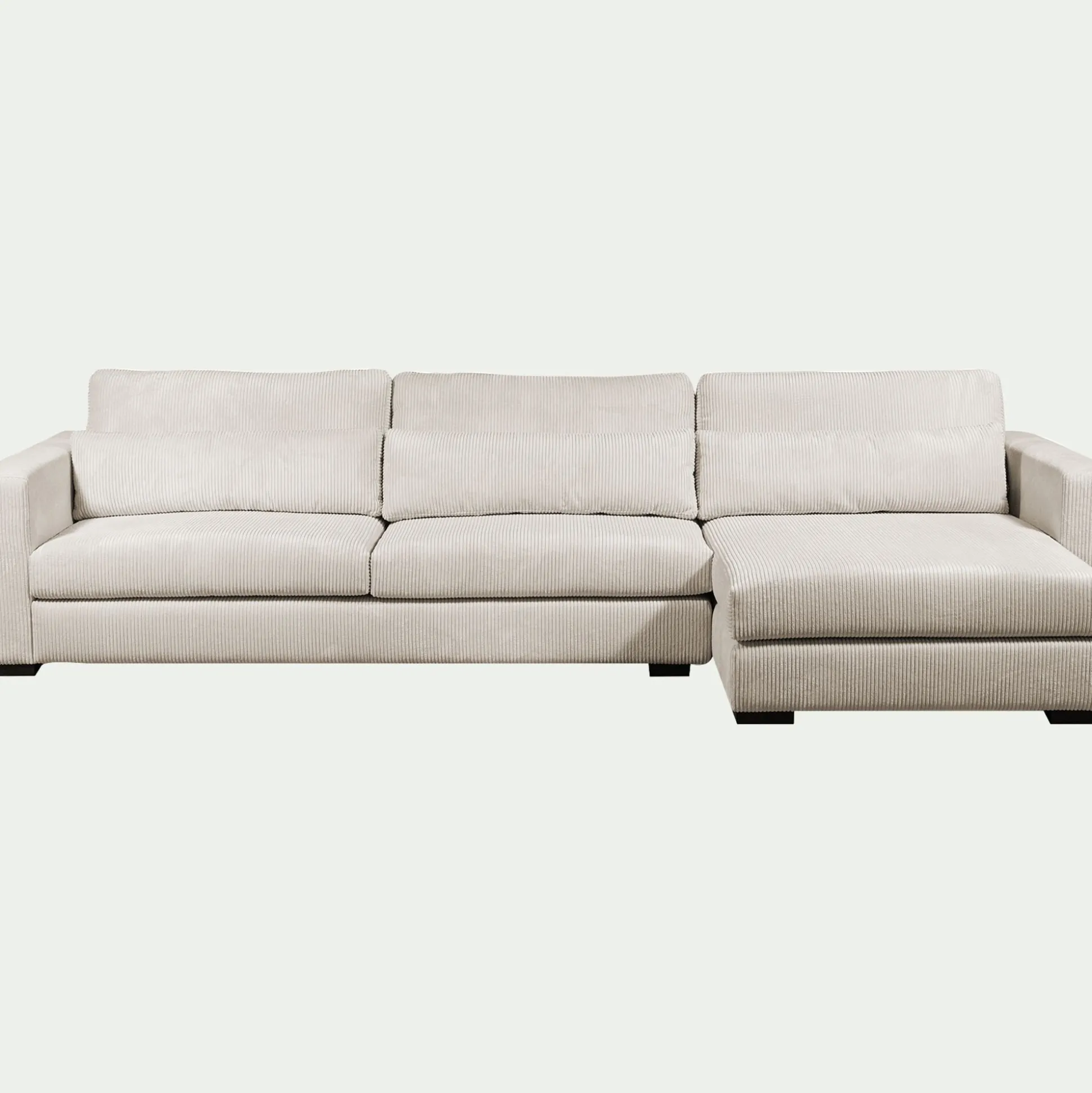Spacieux et raffiné, le canapé d’angle Batis avec angle à droite transforme le salon en un espace convivial et confortable. Sa chaise longue offre un espace idéal pour s’allonger et savourer un véritable instant de repos. En velours côtelé, il insuffle un vent de douceur et d’élégance dans le salon. Sa couleur beige participe à un espace lumineux et reposant, mais aussi polyvalent et intemporel en termes de décoration. Conçu pour durer, ce canapé fixe repose sur une structure en bois massif, garantissant solidité et stabilité. Il s’impose comme l’élément central du salon, invitant à la détente.