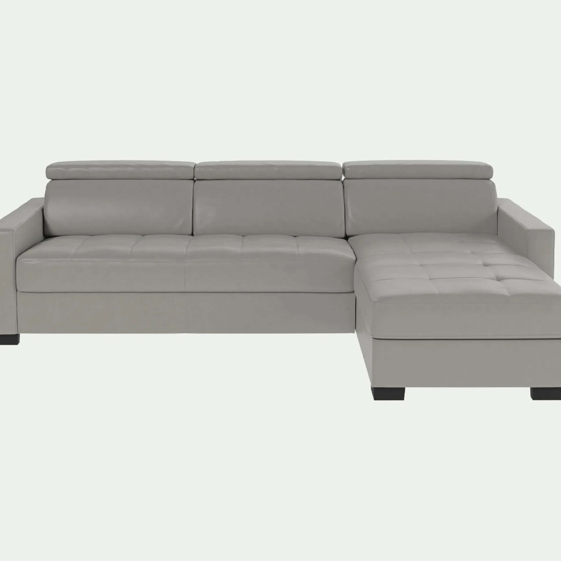 Canapé d’angle convertible en cuir avec accoudoirs 15cm – gris borie