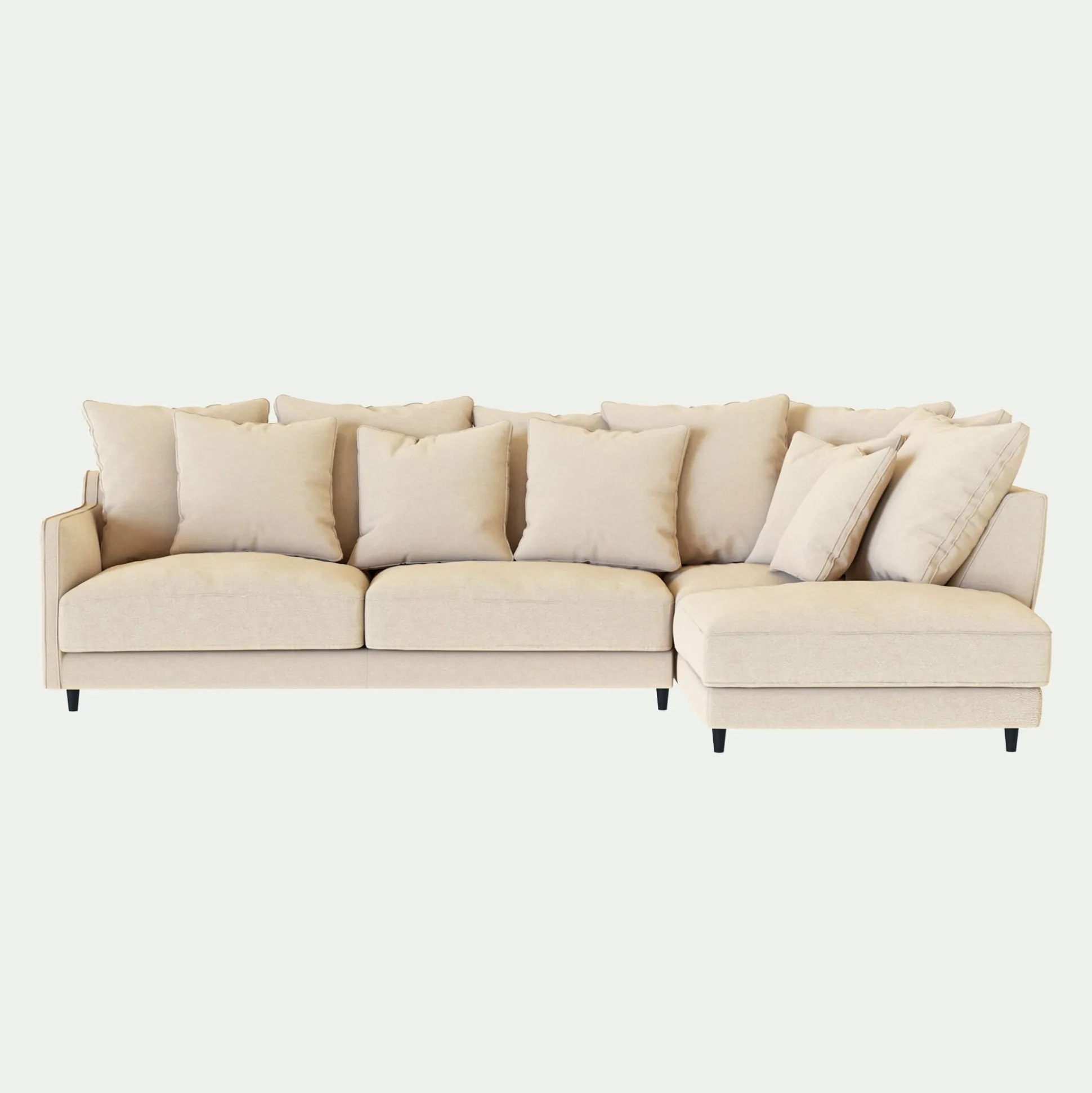 Fabriqué à la main par des passionnés italiens avec une tradition ancestrale dans le domaine du siège et de la tapisserie, ce canapé d’angle droit saura séduire les amateurs de déco. LENITA est une remarquable réinterprétation moderne d’un canapé, inspiré de l’époque somptueuse du Second Empire. Ce canapé convertible en tissu joint, avec sa couleur beige roucas, est une façon idéale de décorer son salon d’une pièce raffiné qui vous permettra d’accueillir amis et famille sur son matelas Bultex qui constitue un parfait couchage d’appoint. Installez-vous confortablement dans ce canapé moelleux, garni de plumes d’oies et venez vous détendre pour des moments de pur bien-être. Sa ligne, ses courbes, la préciosité de la matière veloutée inspirent le raffinement. Les multiples coussins repositionnables vous donneront le juste confort à tout moment de la journée. Son assise profonde et généreuse invite à la paresse. Il sera incontestablement la pièce qui vous fera passer de très bons moments cocooning.
