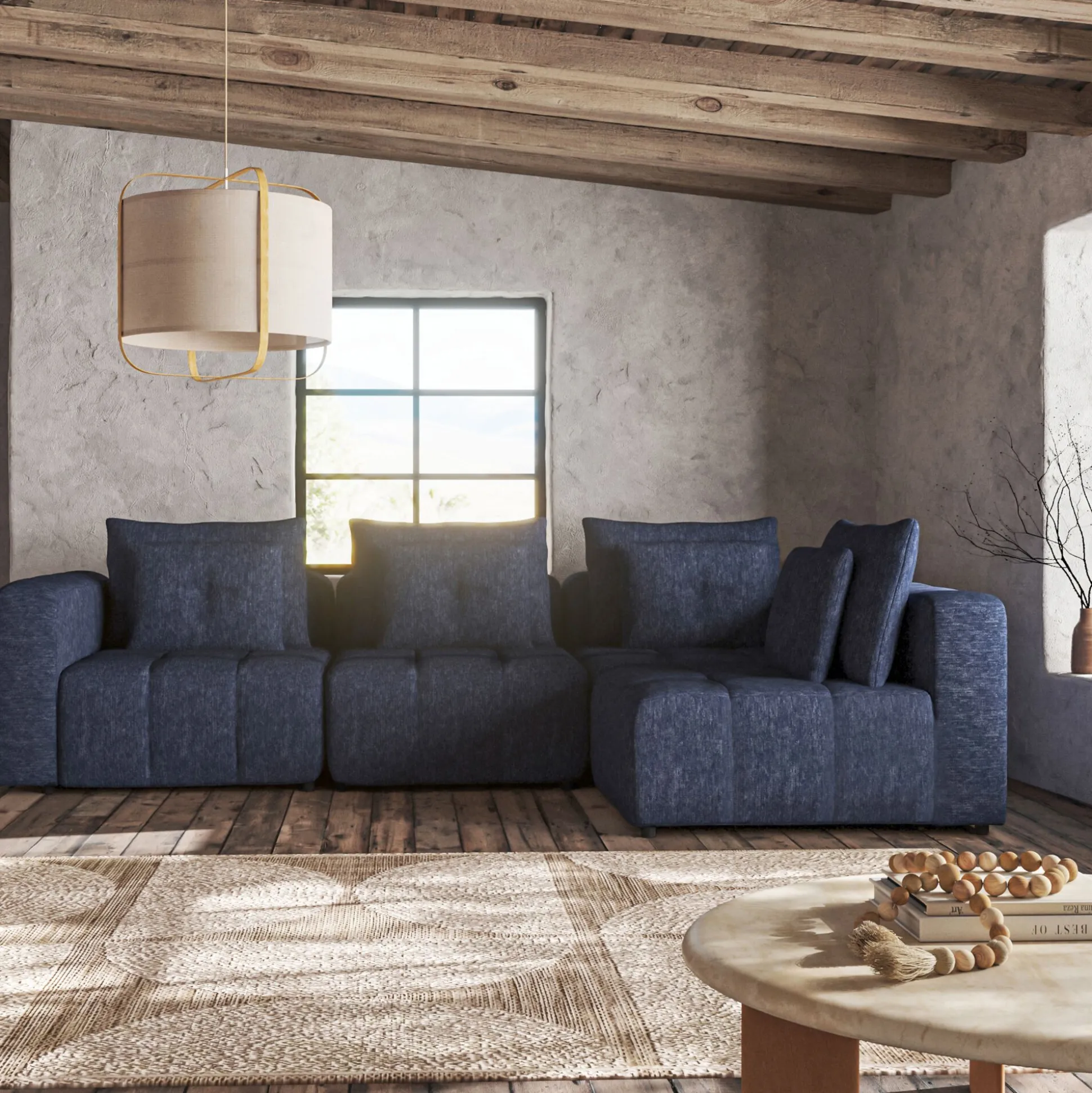 Canapé d’angle droit en tissu Benjo – bleu marine