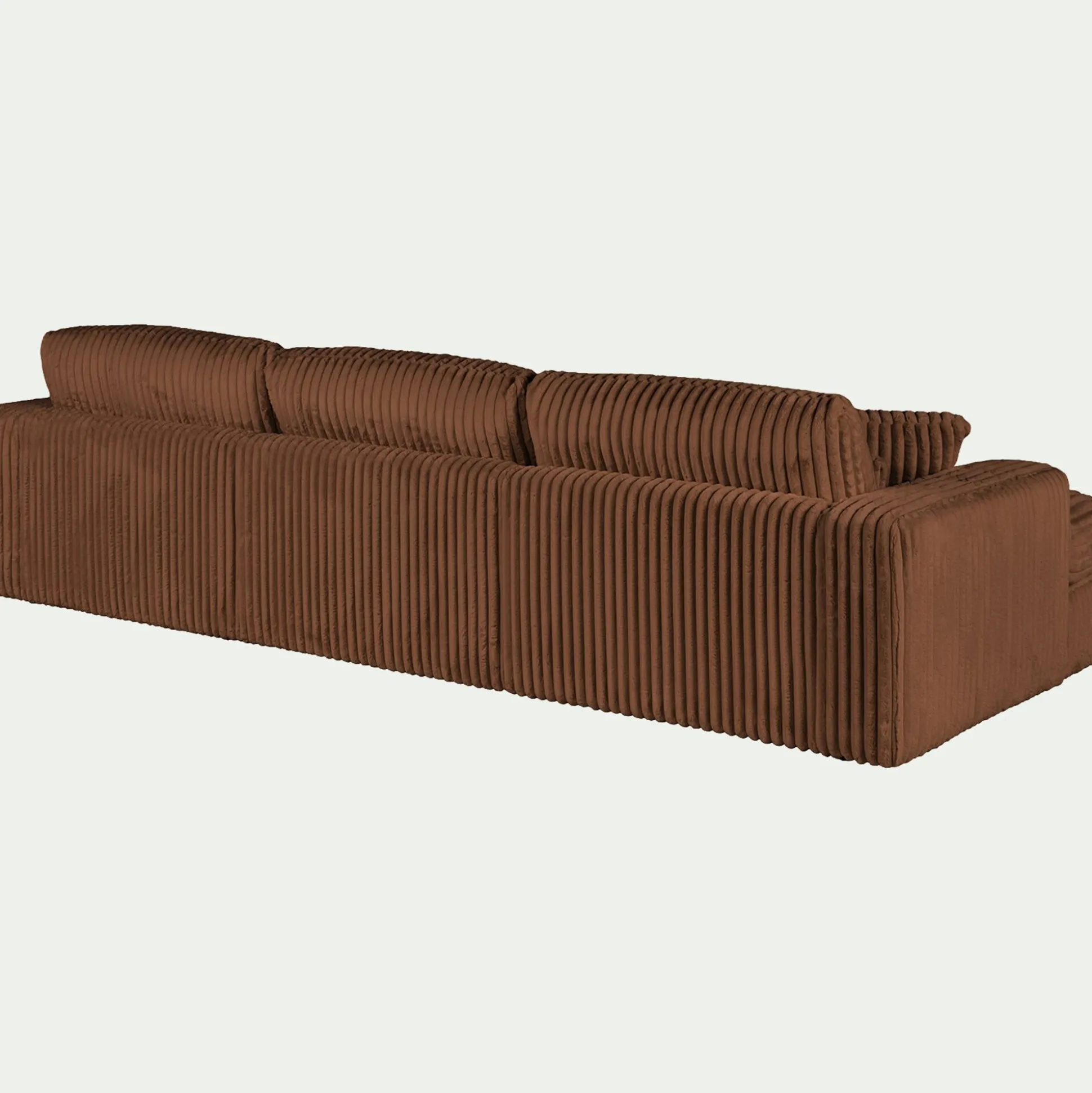 Avec son grand angle droit bien dessiné, ce canapé d’angle invite à la convivialité et au confort. Son revêtement en tissu côtelé, au toucher texturé et chaleureux, apporte du relief à l’espace tout en douceur. Habillé de notre coloris brun rustrel, chaleureux et cocooning, il s’intègre avec élégance dans tous les intérieurs. Ce canapé fixe propose une assise généreuse, un dossier enveloppant et des coussins déhoussables pour un entretien simplifié. Des coussins décoratifs complètent l’ensemble, ajoutant une note cosy à ce canapé pensé pour les moments de détente partagés.