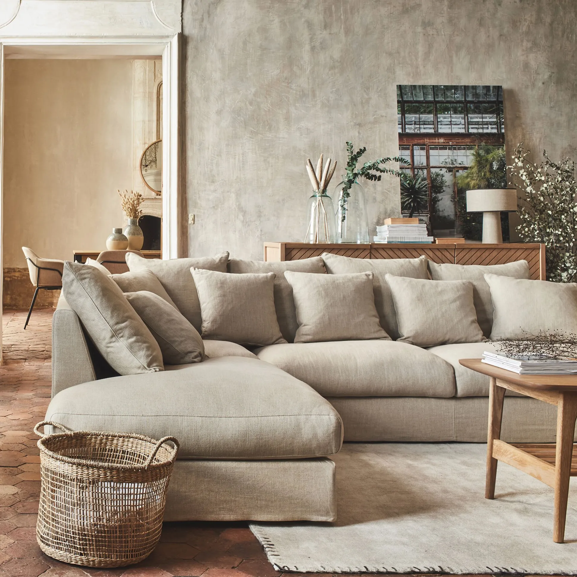 Canapé d’angle fixe gauche en tissu – beige alpilles