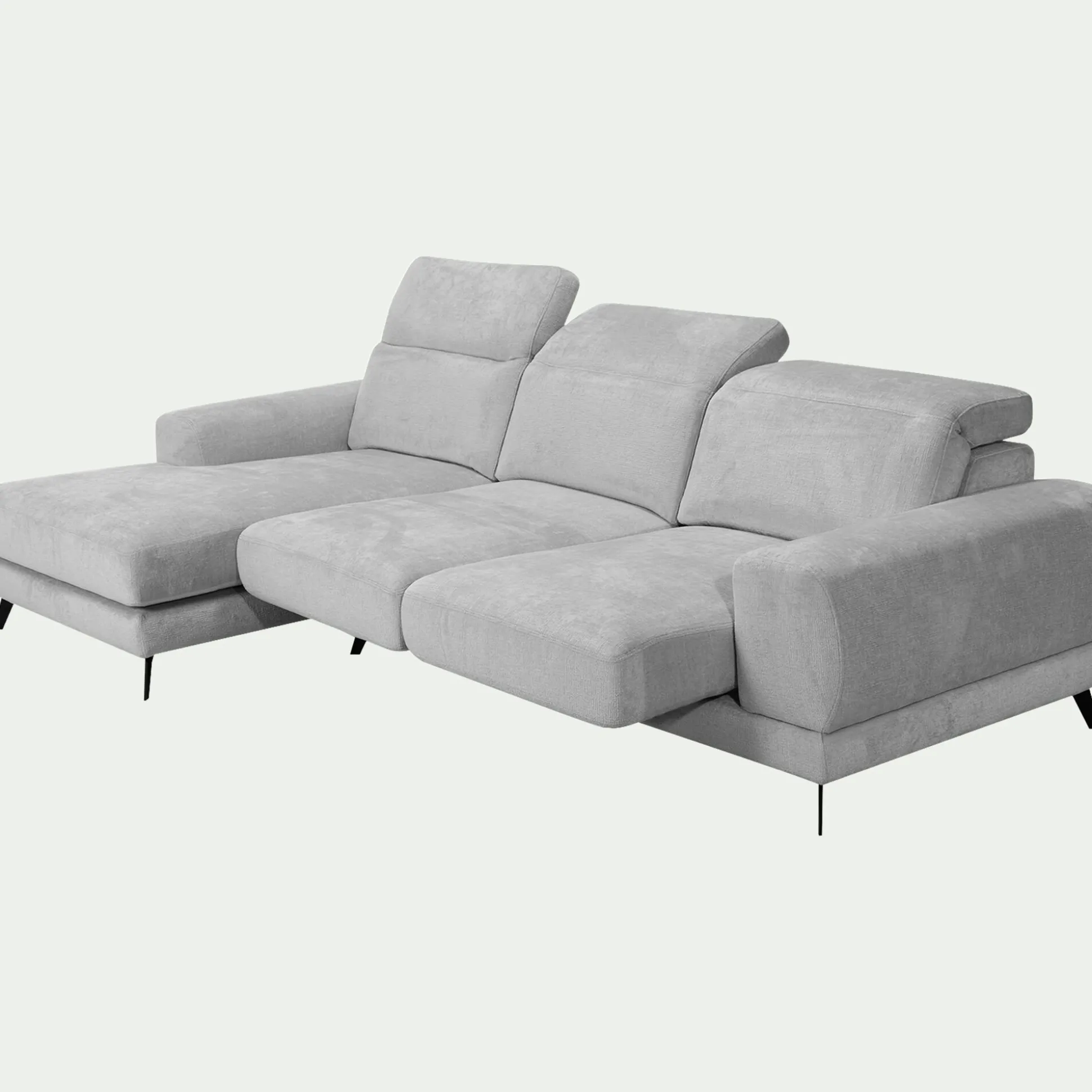 Choisissez un canapé d’angle gauche à la fois design et pratique pour votre maison. Le canapé Palermo, avec son look épuré qui rappelle les modèles italiens, est très esthétique, mais il n’en reste pas moins un canapé fonctionnel. Ses têtières réglables et sa fonction avance-recule pour agrandir l’assise, vous permettent de moduler l’assise et le confort. Vous disposerez d’un canapé avec une assise plus droite pour des moments conviviaux autour d’un apéritif ou encore de moments de détente grâce à une assise plus allongée. Fabriqué en Europe, il garantit une durabilité et une résistance exceptionnelle. En tissu doux gris, il s’adapte à tous les intérieurs pour une atmosphère sophistiquée et élégante.