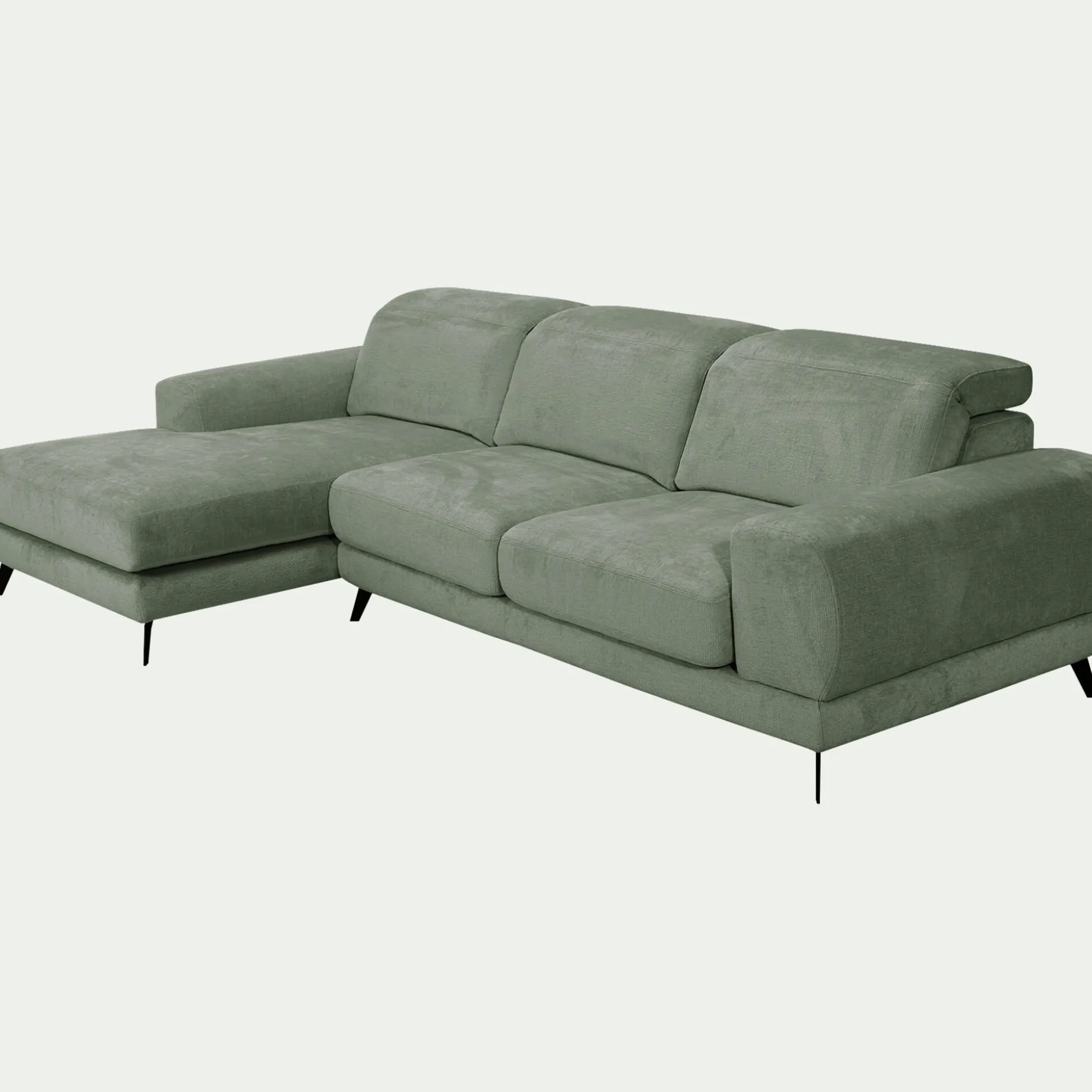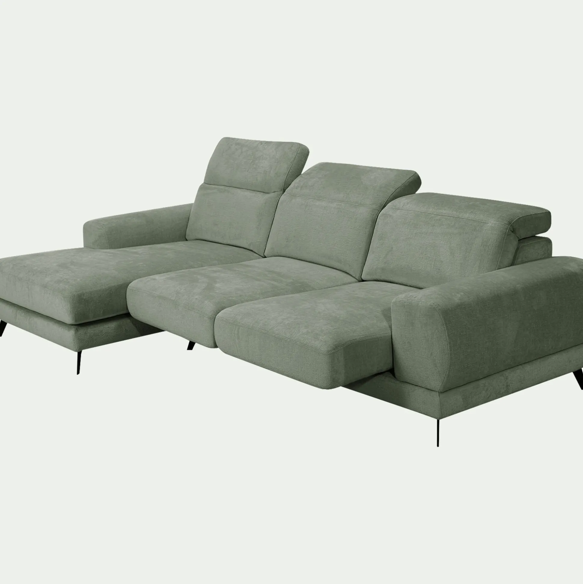 Choisissez un canapé d’angle gauche à la fois design et pratique pour votre maison. Le canapé Palermo, avec son look épuré qui rappelle les modèles italiens, est très esthétique, mais il n’en reste pas moins un canapé fonctionnel. Ses têtières réglables et sa fonction avance-recule pour agrandir l’assise, vous permettent de moduler l’assise et le confort. Vous disposerez d’un canapé avec une assise plus droite pour des moments conviviaux autour d’un apéritif ou encore de moments de détente grâce à une assise plus allongée. Fabriqué en Europe, il garantit une durabilité et une résistance exceptionnelle. En tissu doux vert, il s’adapte à tous les intérieurs pour une atmosphère sophistiquée et élégante.