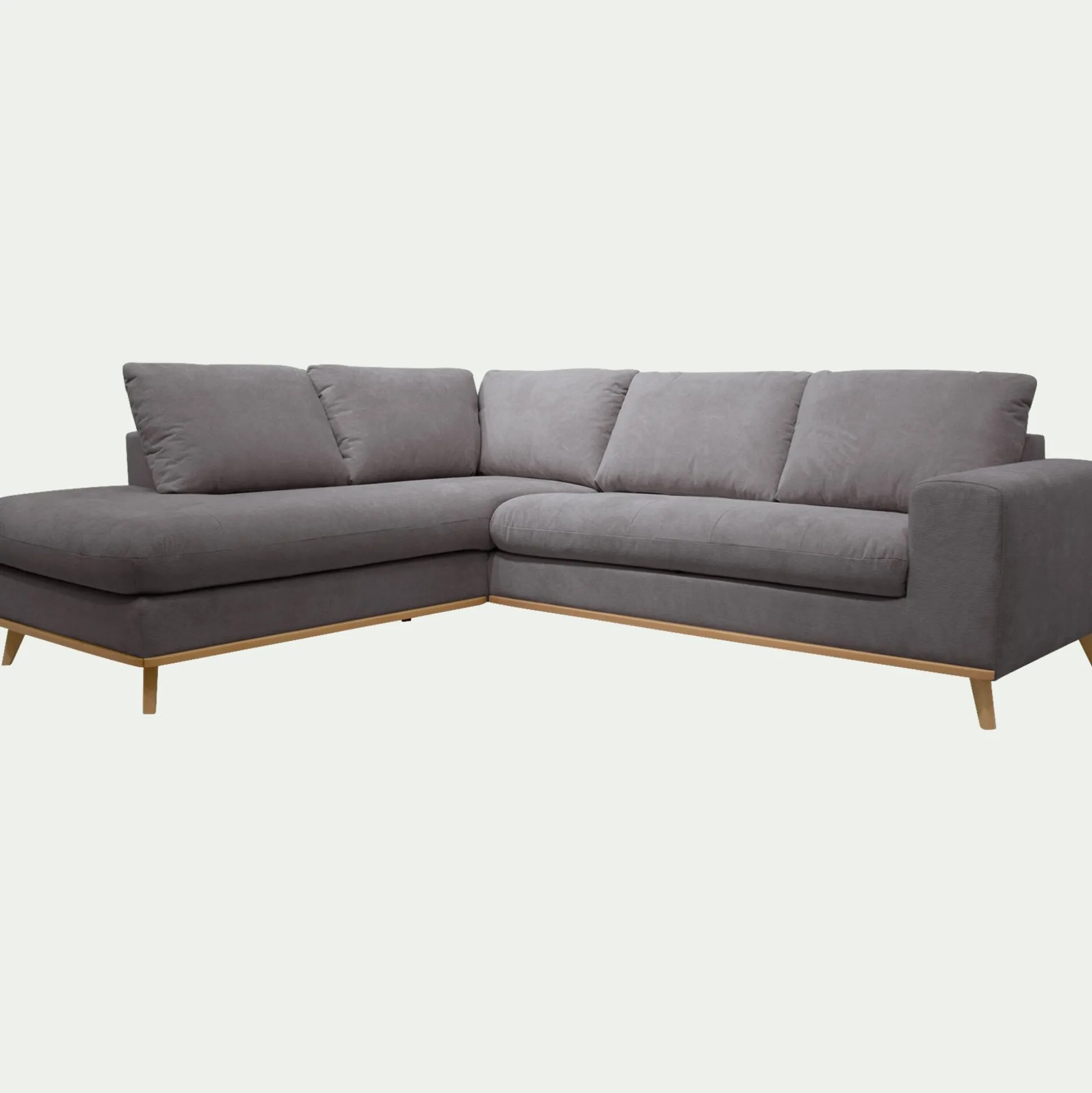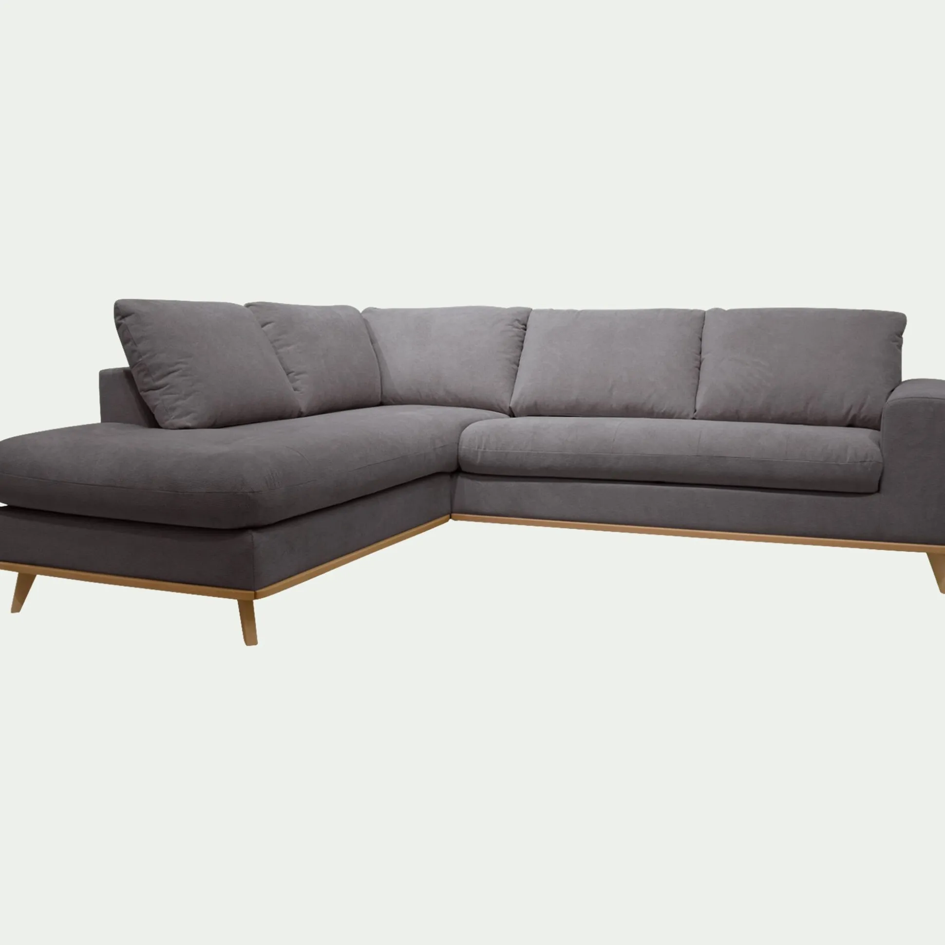 Canapé d’angle gauche convertible en tissu Crown – gris restanque