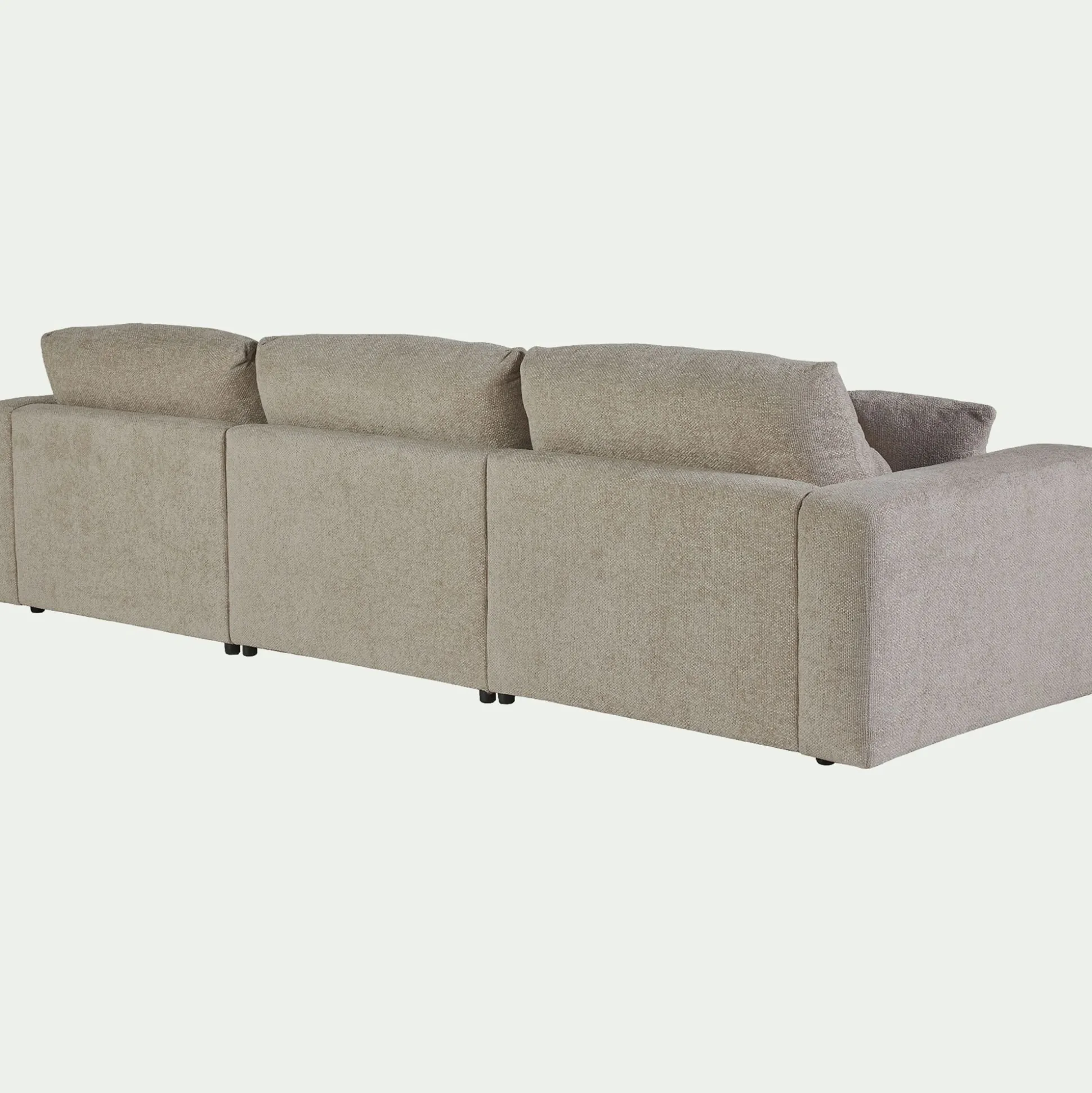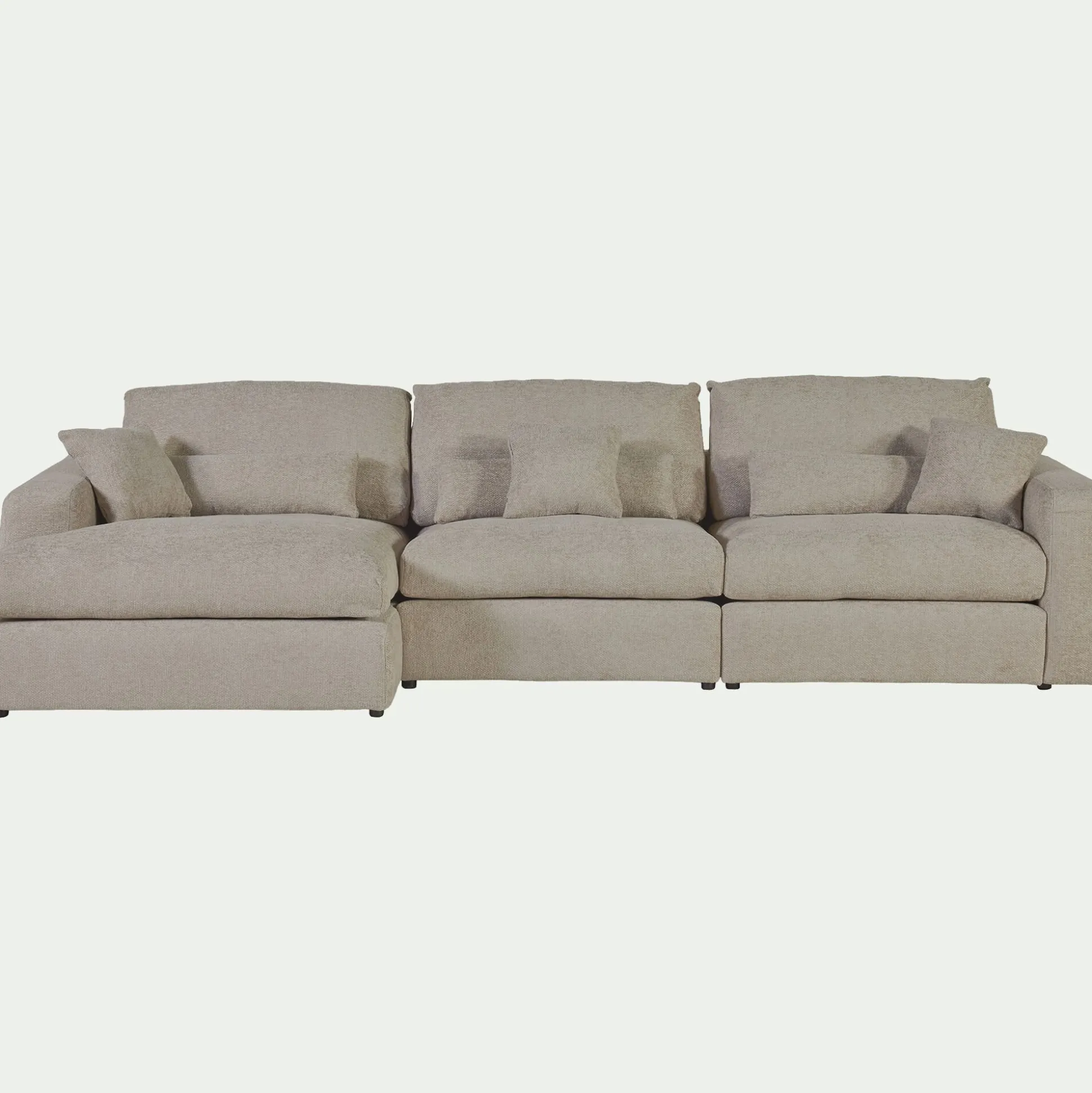 Avec son format généreux 5 places et son angle à gauche, ce canapé d’angle est une invitation aux moments partagés. Son revêtement en tissu chenille, à la fois doux et résistant, enveloppe l’espace d’une chaleur réconfortante. Son coloris beige roucas, intemporel, s’harmonise avec tous les styles d’intérieur. Pensé pour le confort, ce canapé fixe se compose d’une assise spacieuse, d’un dossier accueillant et de coussins déhoussables pour un entretien facilité. Six coussins décoratifs viennent parfaire l’ensemble, ajoutant une touche cosy. Un canapé idéal pour des instants de détente en famille ou entre amis.