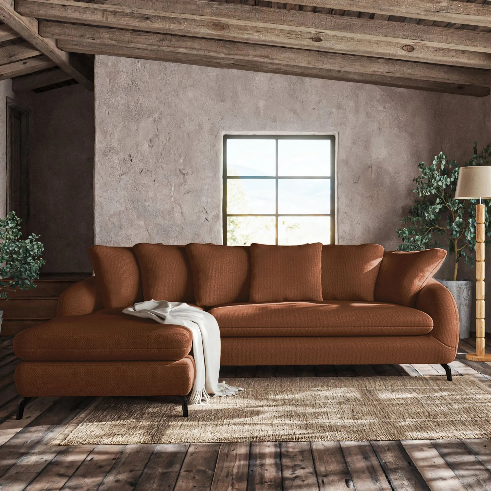 Un joli canapé d’angle gauche en tissu pour profiter agréablement de votre salon. Un look contemporain et accueillant, sublimé par un piétement original en acier noir. Vous apprécierez la forme du dossier et des accoudoirs qui vous offrent un maintien optimal de votre dos pour un confort d’assise exceptionnel. Un canapé fabriqué en France, dans des ateliers proches de la ville de Bourge, qui incarne l’excellence du savoir-faire français. Un coloris brun rustrel qui apporte une note citadine et raffinée à votre décoration de salon.
