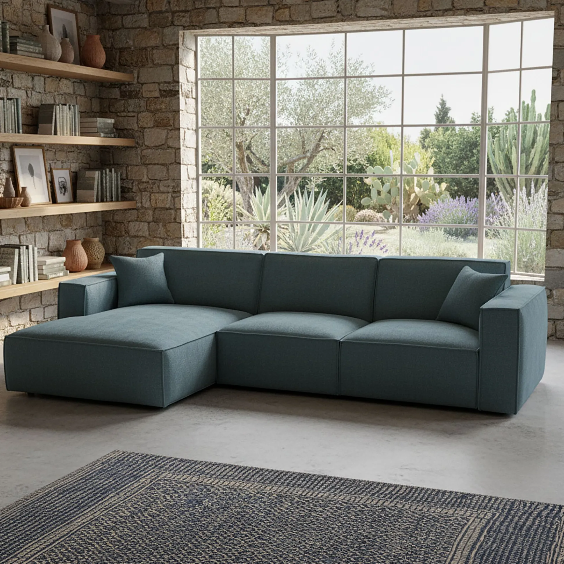 Le canapé d’angle Kubo avec méridienne à gauche est pensé pour offrir un espace accueillant et chaleureux dans le salon. Habillé de tissu genesis, à la fois doux et résistant, il allie confort et praticité au quotidien. Son coloris bleu, vif mais apaisant, s’intègre facilement dans toutes les ambiances et habille le séjour d’une touche de douceur. Fixe et généreux, ce canapé se distingue par une silhouette contemporaine qui structure l’espace avec élégance. Fabriqué en Ukraine, il conjugue style et confort pour accompagner les instants de détente comme les moments partagés.