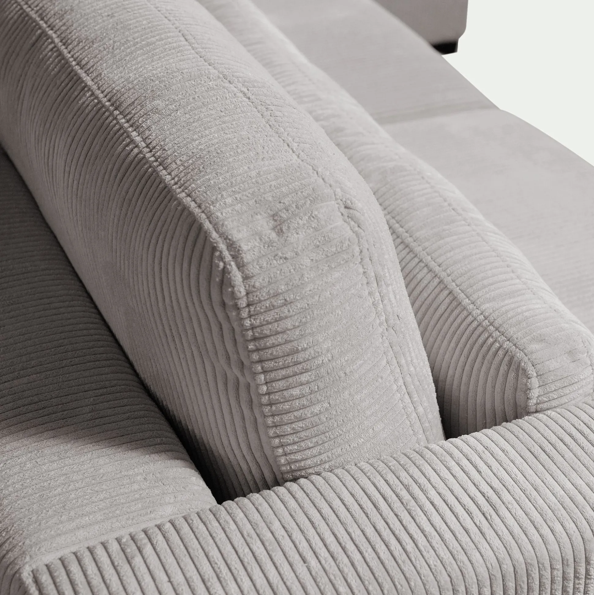 Canapé d’angle méridienne droite fixe en velours côtelé Azores – gris borie