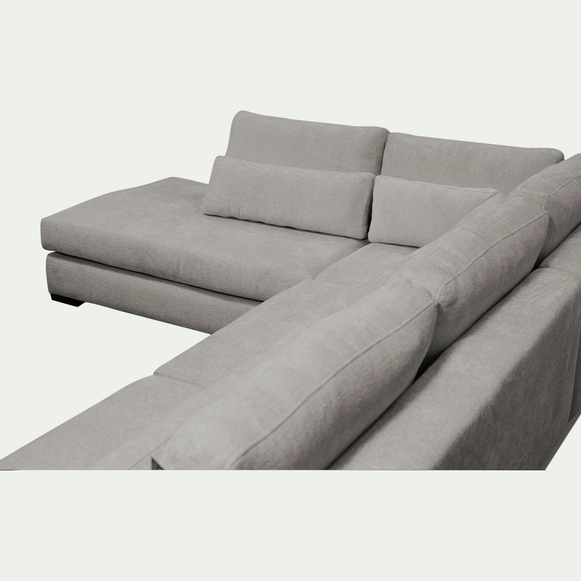 Ce canapé d’angle avec méridienne à gauche fait de votre salon un véritable havre de détente. Son format spacieux permet d’accueillir toute la famille ou de s’étendre confortablement après une longue journée. Habillé d’un tissu gris à la fois contemporain et raffiné, ce canapé fixe charme par sa texture douce et résistante. Son assise profonde repose sur une structure en bois massif et des ressorts, assurant un confort durable et un soutien équilibré. Conçu pour le quotidien, ses coussins de dossier et d’assise sont entièrement déhoussables, facilitant l’entretien. Imposant et élégant, ce grand canapé gris apporte du caractère à la pièce et devient le compagnon idéal des moments de convivialité et de relaxation.