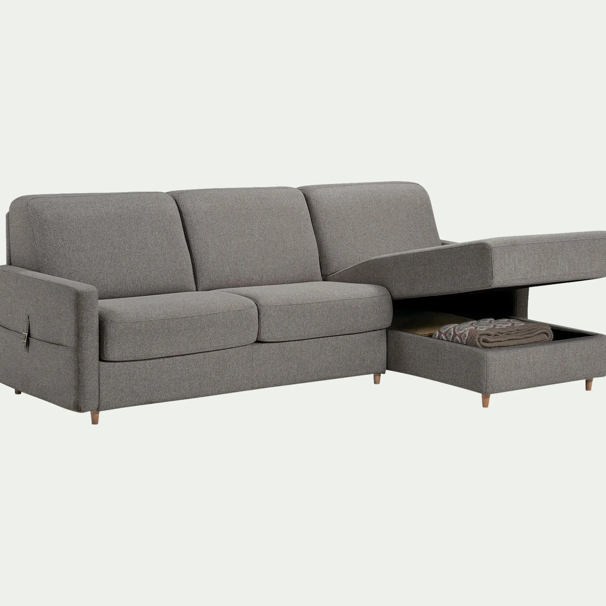 Le canapé Gaya est non seulement un meuble de qualité, mais aussi un bel élément de déco pour votre intérieur. Ce canapé d’angle de fabrication italienne, confectionné à partir d’un savoir-faire unique, allie charme et praticité, et saura trouver sa place dans votre salon. En effet, c’est un canapé convertible doté d’un lit en 140×195 cm très confortable, adapté pour un couchage quotidien d’une densité de 35kg/m3. Son mécanisme métallique vous permet de le déplier en quelques secondes sans enlever ses coussins. Ce canapé droit en tissu gris offre un soutien optimal adapté à chaque partie du corps.