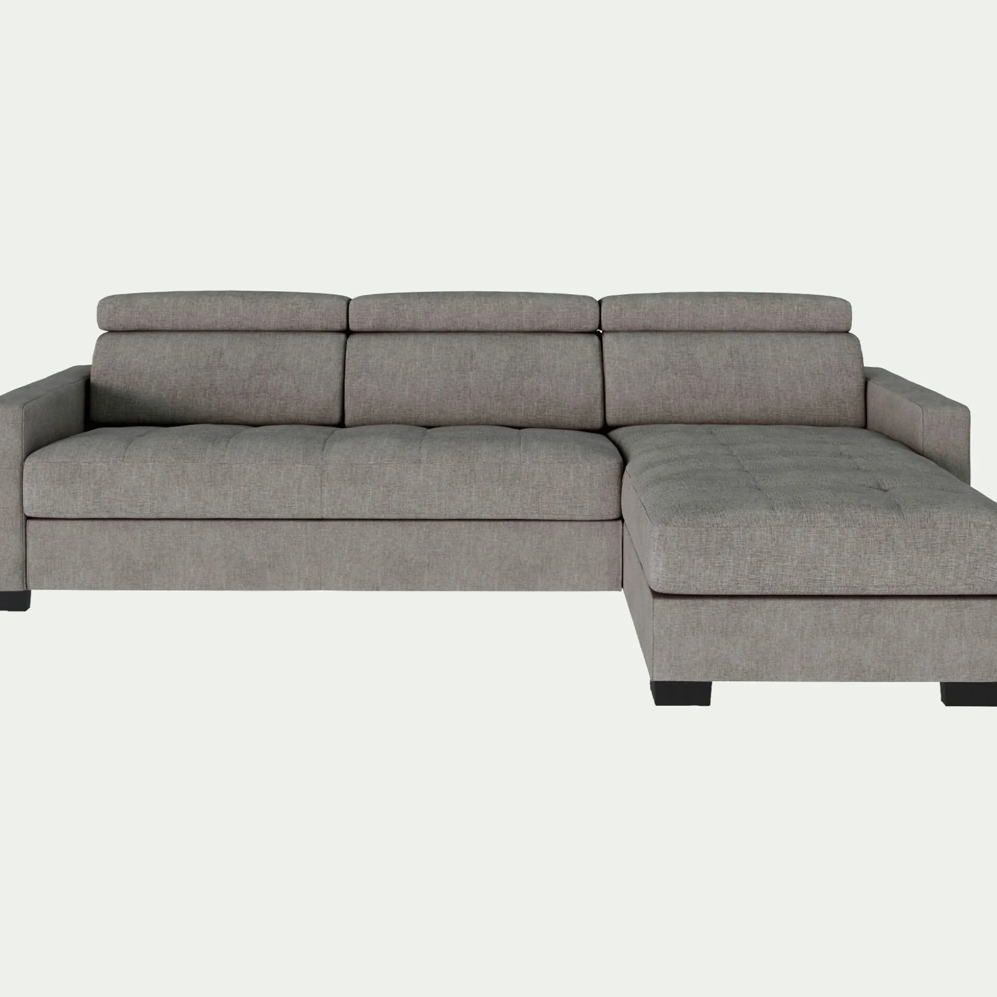 Mauro est une gamme de canapés au style contemporain et d’une grande élégance pour décorer votre salon. Conçu en Italie, il est le fruit d’un travail minutieux et d’un savoir-faire unique. Ce canapé d’angle réversible en tissu couleur taupe arborant de larges accoudoirs de 15 cm et des têtières relevables, vous procure un confort d’assise incomparable et vous invite à savourer d’agréables moments de détente. Avec sa fonction convertible, vous pourrez le transformer en un confortable couchage afin d’accueillir famille et amis. Un meuble de fabrication européenne qui sera la pièce maîtresse de votre salon et sublimera votre décoration d’intérieur.