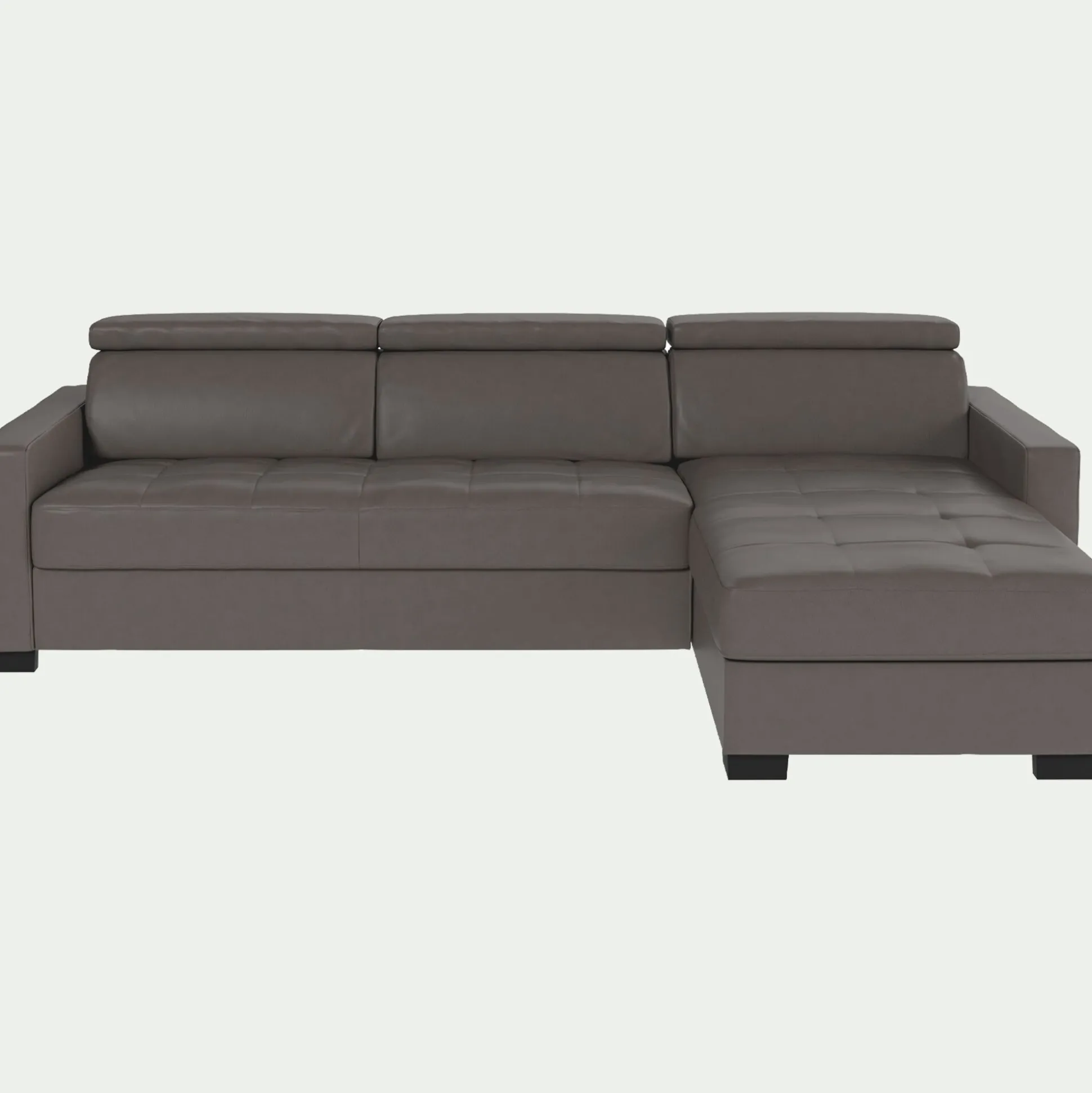 Modulable et spacieux, ce canapé d’angle incarne à la fois confort et caractère. Son angle réversible permet une installation à droite ou à gauche selon l’agencement souhaité, pour une adaptation parfaite à tous les intérieurs. Doté de têtières réglables et d’accoudoirs de 15 cm, il promet un excellent maintien pour des instants de détente prolongés. Revêtu de cuir de buffle taupe, ce canapé d’angle réversible séduit par son toucher agréable et sa résistance. Ce cuir tirant sur le gris participe à une décoration inspirée du style contemporain. Une pièce forte, fabriquée en Italie, où design et savoir-faire se rencontrent.