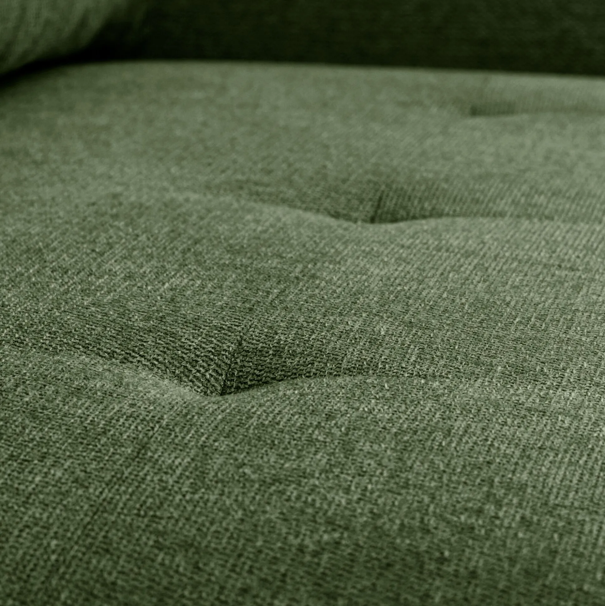Pensé pour s’adapter à chaque intérieur, ce canapé d’angle réversible permet de choisir l’orientation de son angle, à gauche ou à droite, selon les envies et l’agencement de la pièce. Sa structure en bois accueille une assise en mousse généreuse, complétée par trois coussins de dos qui offrent un soutien optimal aux lombaires et aux épaules. Son revêtement en tissu tramé vert, à la fois profond et naturel, habille ce canapé d’une élégance intemporelle. Non déhoussable, il repose sur des pieds en bois de hêtre qui renforcent son allure chaleureuse et naturelle. Compact avec ces 192 cm de long, ce canapé d’angle 3 places fabriqué en Roumanie est idéal pour conjuguer style et confort au quotidien, même dans un petit salon.