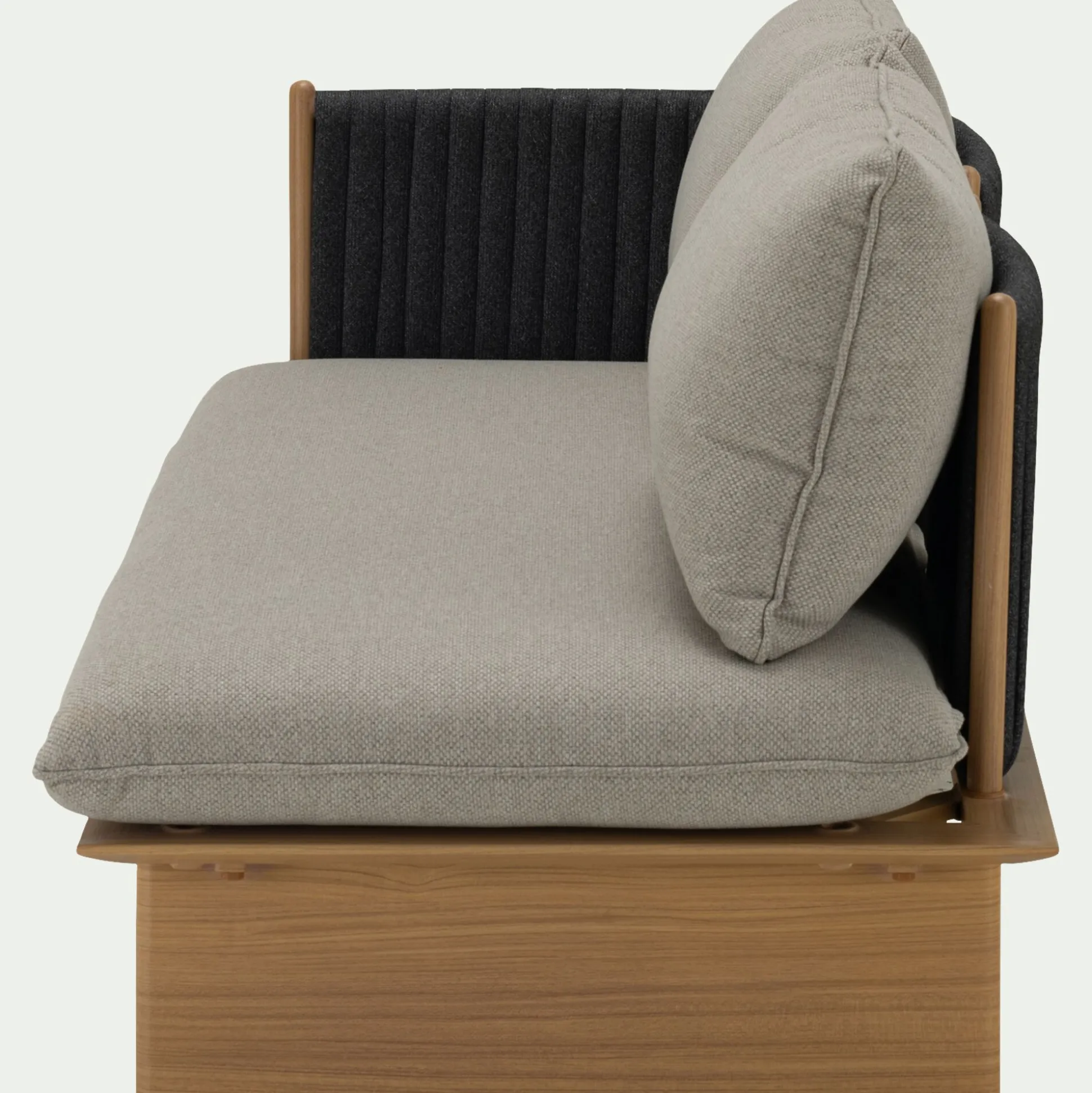 Avec son design mêlant lignes contemporaines et matières chaleureuses, la banquette d’extérieur Porto Cervo invite à la détente. Sa structure en métal finition bois recrée l’esthétique du teck tout en offrant robustesse et facilité d’entretien. Un accoudoir en corde noire vient sublimer son allure avec une touche graphique et raffinée. Pensé pour le bien-être, ce canapé 2 places est agrémenté de coussins gris clair, épais et moelleux, qui transforment chaque instant en un véritable moment de confort. Parfait pour lire un livre à l’ombre ou partager un apéritif sous le soleil, il trouve sa place aussi bien sur une terrasse que dans un coin du jardin.